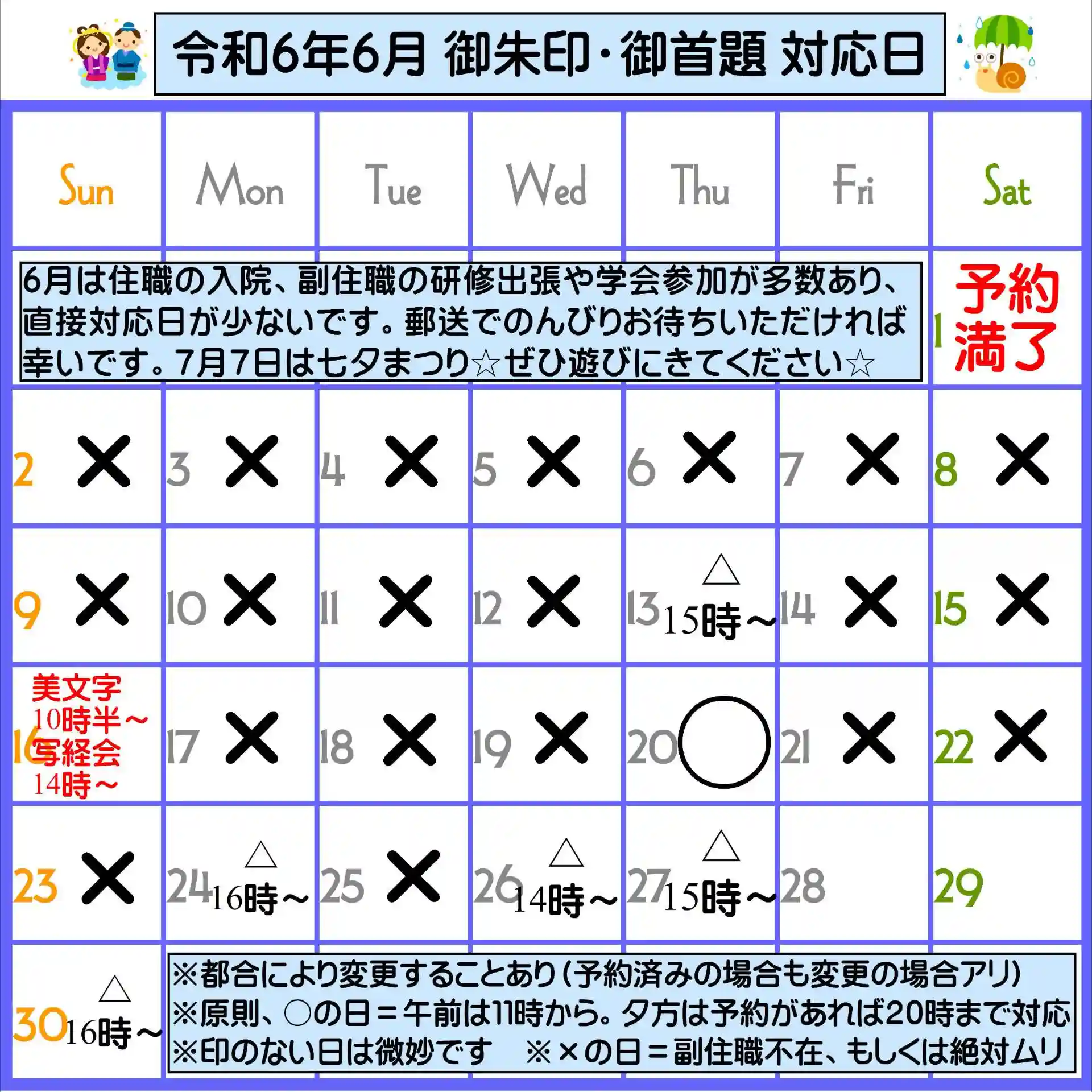 6月の対面での対応日は少なく、すでに予約で埋まっています。