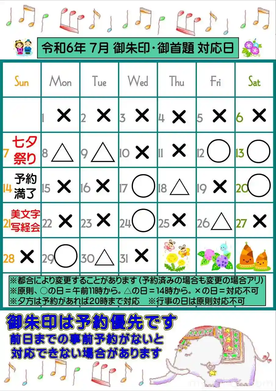 さて、7月のお寺での対応カレンダーです。