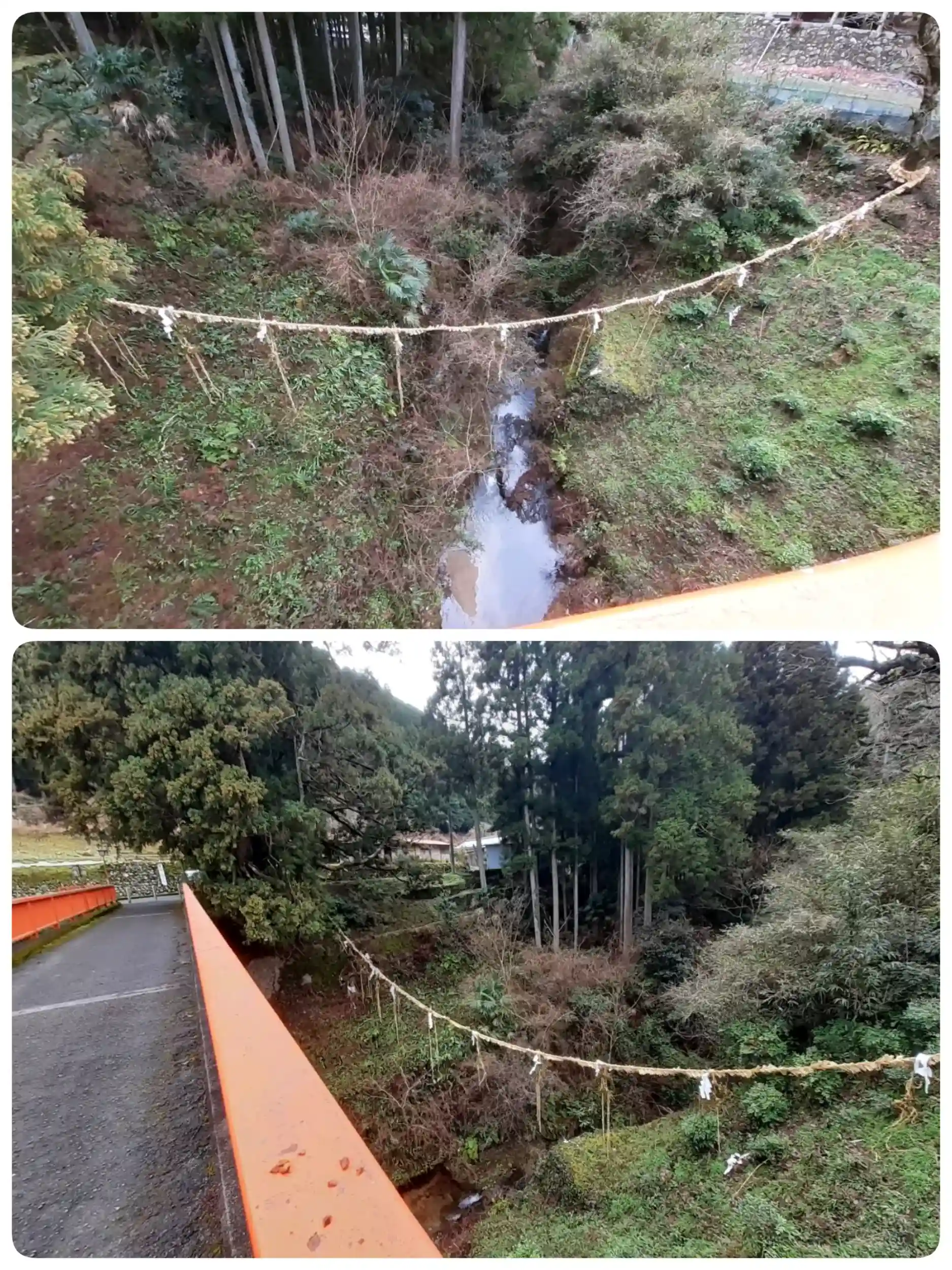 長暦3年(1039年)石清水八幡宮より勧請された際の御柱渡御古例祭。長さ200尺(60m)の注連縄を作り、勧請杉と柿の古木との間に掛ける。流谷と天見を分ける結界の意味があり疫病や忌穢れがお互い入り込まないようにしている🙏
