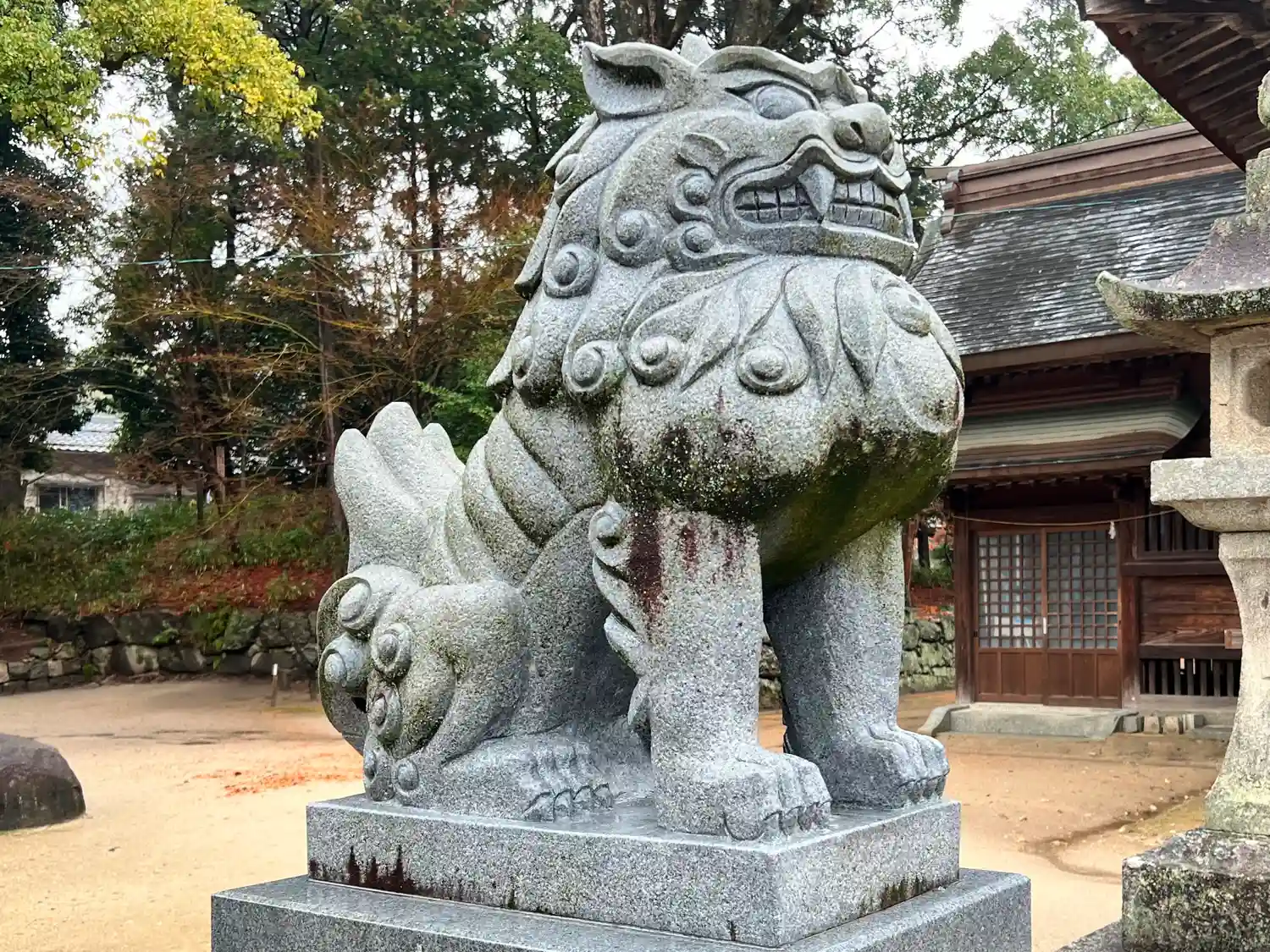 参道右側にある1組目の<狛犬>。こちらも怖い。