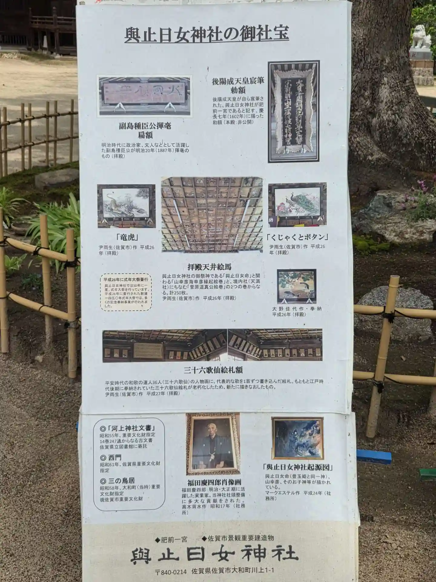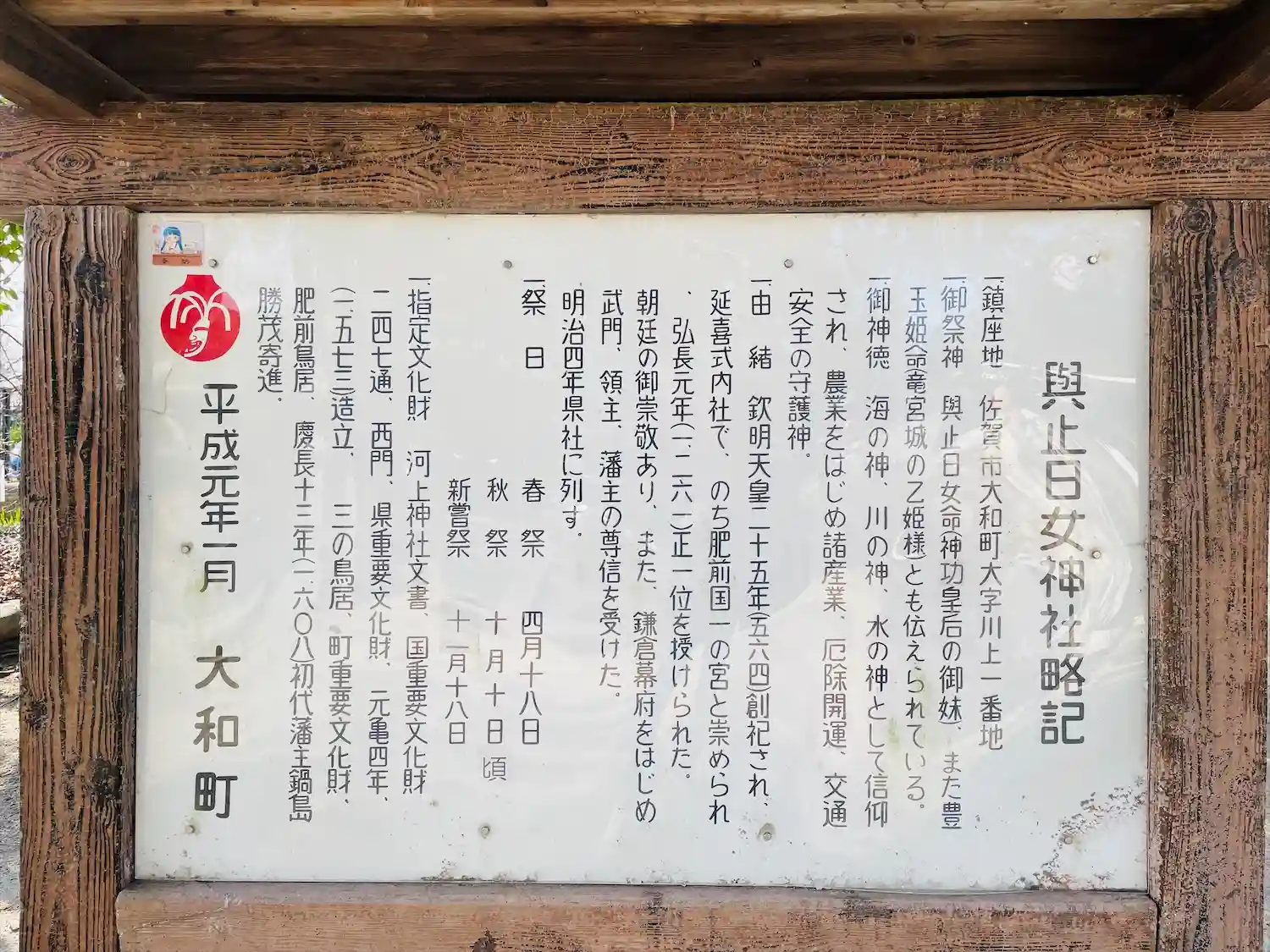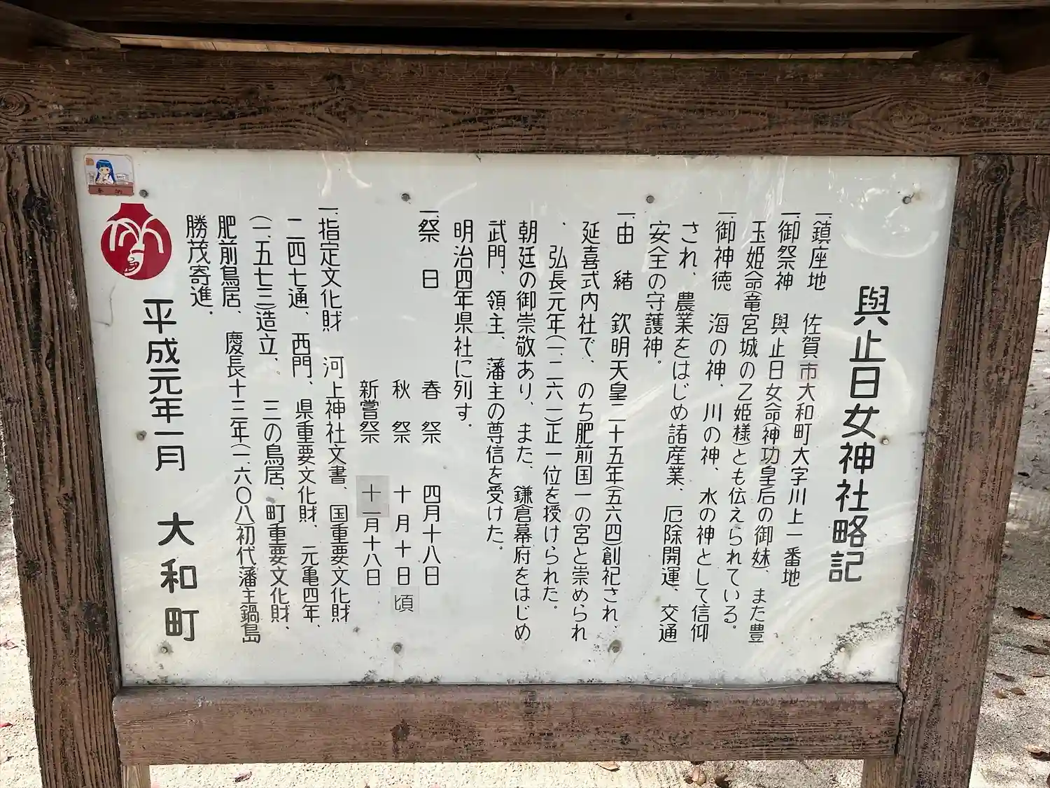 與止日女神社御社宝案内板