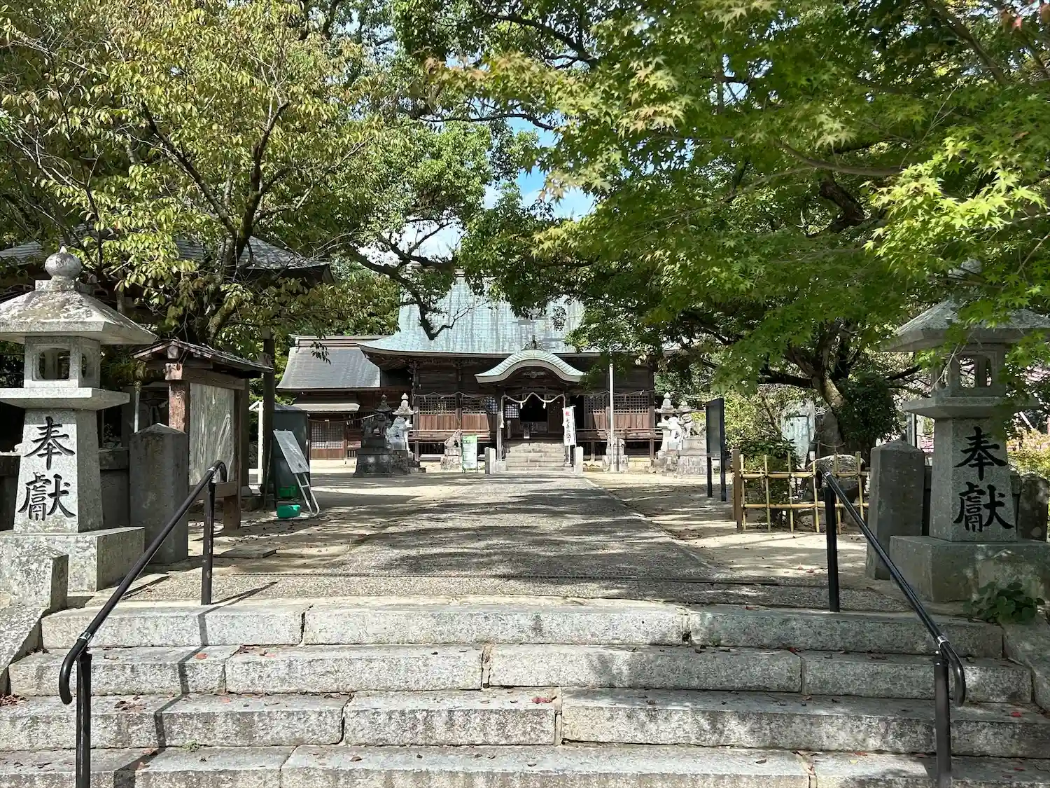 拝殿から振り返って境内全景。