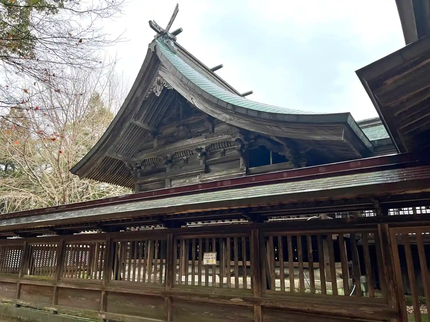 ①笠木と島木が一体化していて、木鼻が流線形にのびている