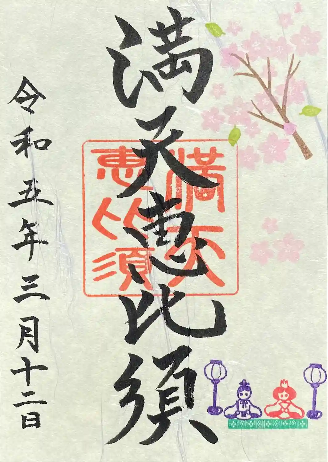 片面 御朱印(満天恵比須)も桜と雛人形を飾りました。