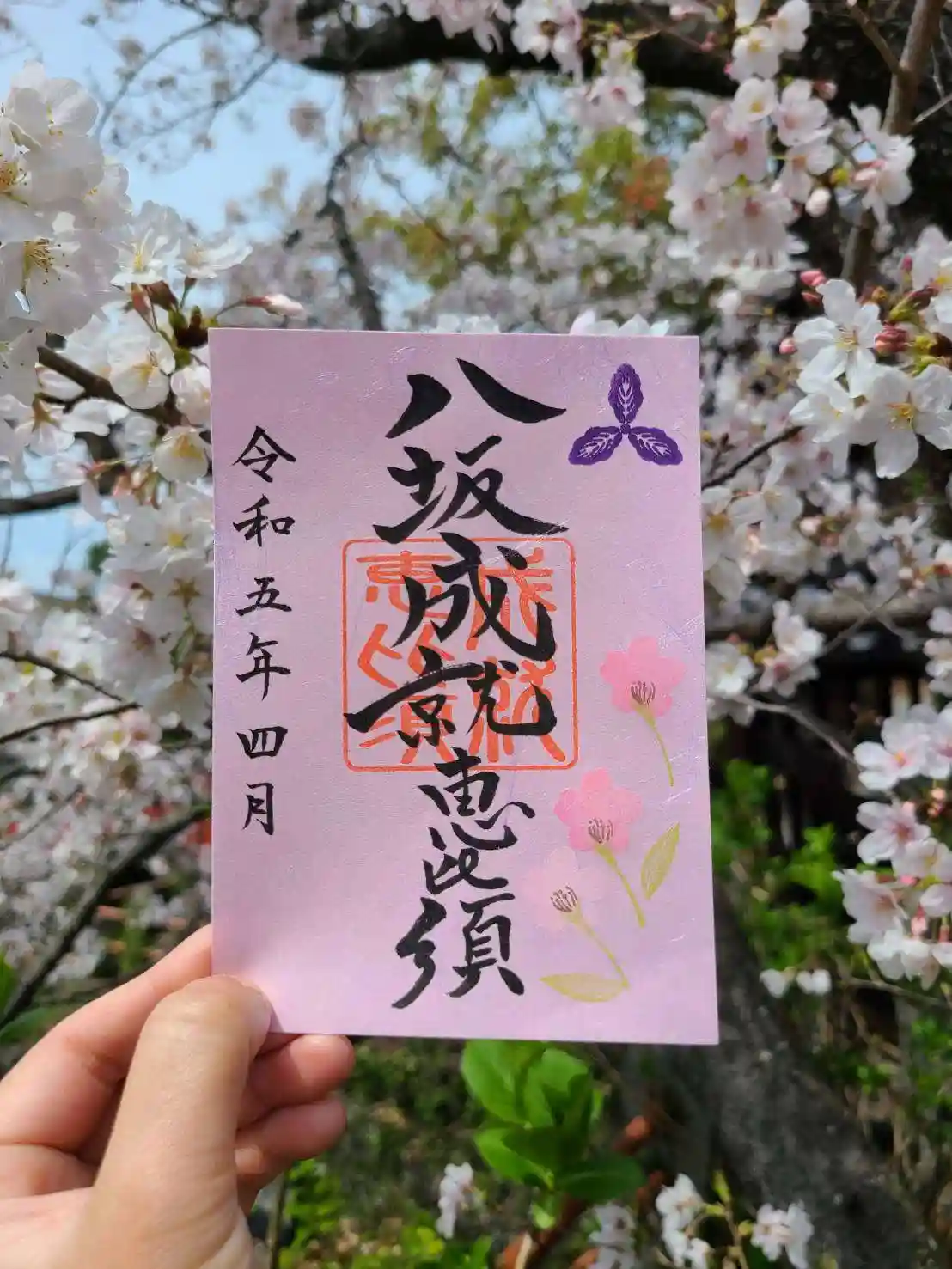 4月の片面御朱印(牛嶋天満宮 満天恵比須 八坂成就恵比須)も桜花を飾りました。