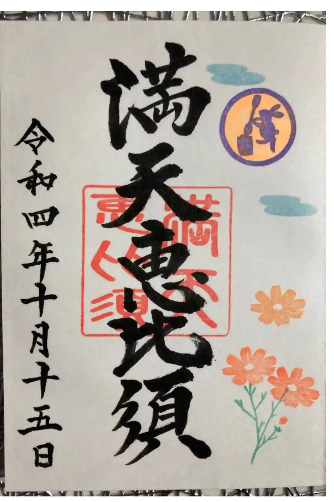 神無月限定 満天恵美須 秋桜御朱印 直書 遙拝
