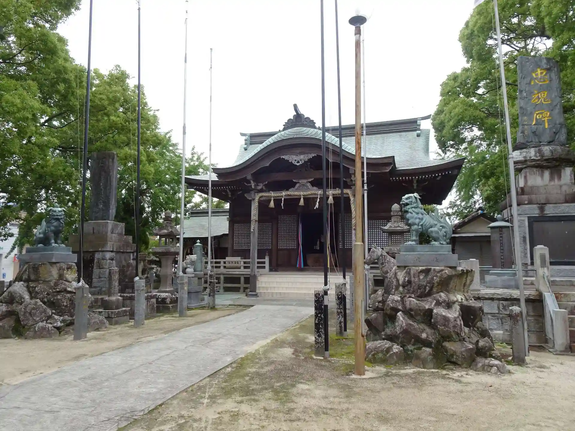 鳥居をくぐると、狛犬の位置に、派手な大黒天様と恵比寿様が鎮座する明るいお社でした。佐賀のお社の定番のクスノキもございました。