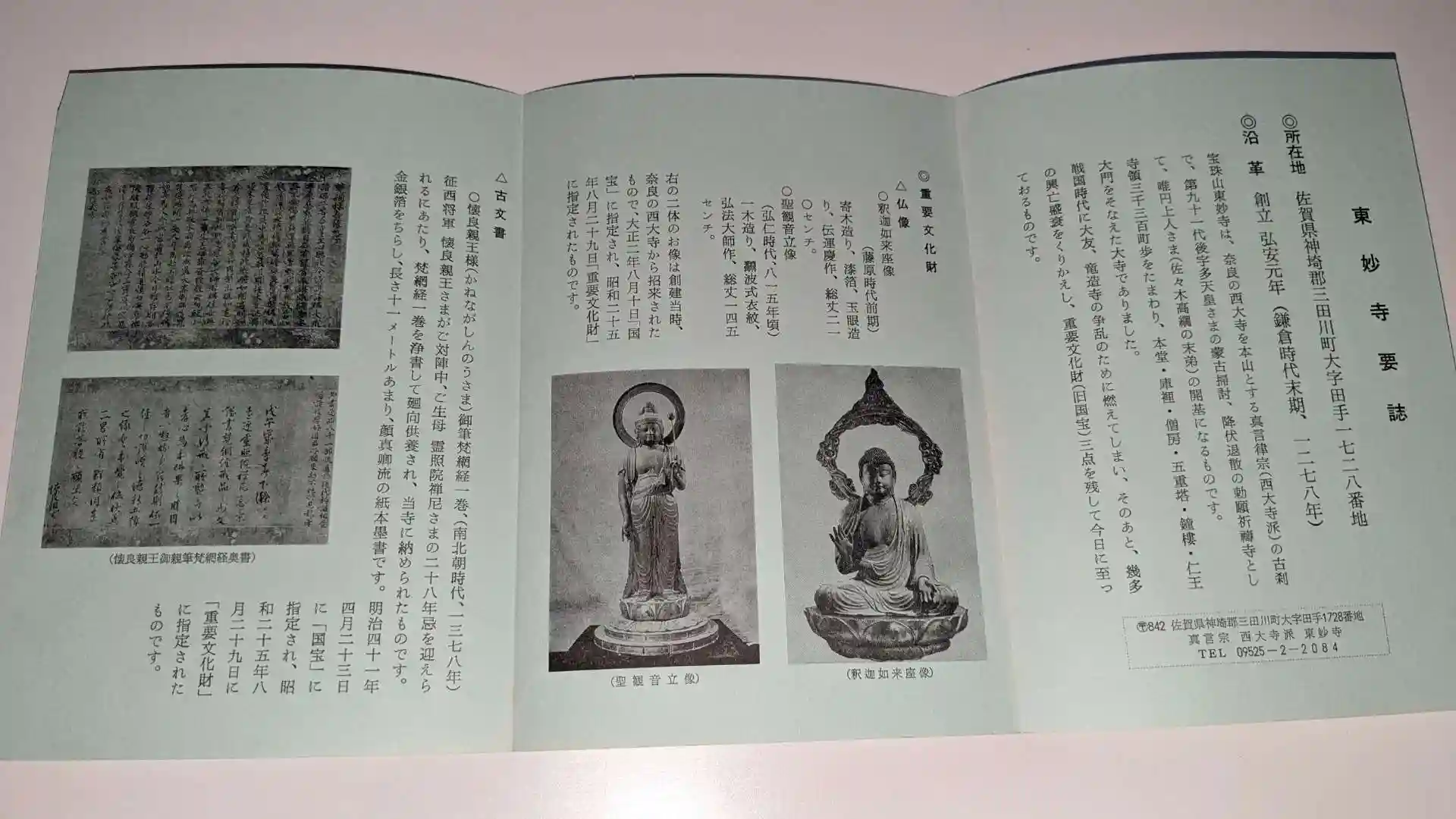 御朱印を快く書いて頂き帰ろうとしていたところ、北海道からわざわざ参拝に来てくれたということでなんと住職さんが普段非公開の本堂奥にある重要文化財の仏像を見せて頂きました!御本尊の釈迦如来坐像は運慶の作品と伝わるもので聖観音立像は弘法大師が彫った作品でなんと佐賀県内で最も古い仏像です。他にも色んな仏像を見せて頂きました。その中で気になったものは足利尊氏像。他と違い状態がかなり悪く原型を留めていません。この像は足利尊氏が後醍醐天皇と対立し九州まで落ち延びた際に本人が奉納したもの。このお寺で再起を祈願した尊氏はこの像を自分だと思って祈ってほしいと当時の住職に頼んだといいます。その後足利尊氏は室町幕府を開き東妙寺は足利将軍家から庇護を受ける様になりました。しかし時代が進み明治時代になると廃仏毀釈を行う地元の尊王攘夷派が寺に押し入り逆賊である足利尊氏の像を外へ捨ててしまい雨風に晒されて朽ちてしまったようです。元は仁王像の様な立派なものだったといいます。仏像と共にお寺に伝わる歴史まで丁寧に教えて頂き住職さんには感謝しかありません。本当にありがとうございました。