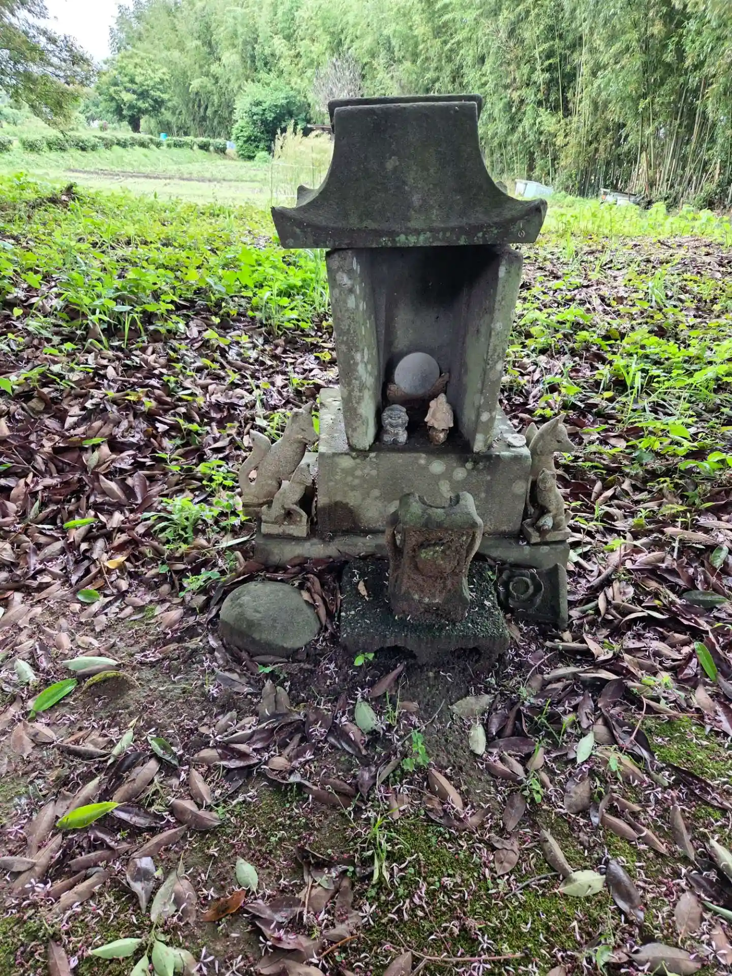 公民館と共有の広い駐車場に停めることができます。変わった社名なので少し調べると景行天皇筑紫御巡狩の際、酒殿泉付近で食事をしていた時、鎧が光り輝いていたので占うと地主神が鎧を欲しがっていました。そこで永世の寶とすべしと鎧を奉納されたとのこと。御祭神は住吉大神・大巳貴命 八幡大神・春日大神ですが、それは後の世に勧請合祀されたようで、元は地主神ということななる様です。現在は主祭神は八幡神となっているようです。参拝後、周囲を散策すると社名不詳の石祠がありましたが、花が供えられていたので、何か特別な社なのかと思いましたが、詳細は不明です。以前の他の投稿などを見ても、この社には榊や花が供えられていました。社務所兼自宅に赴き、呼び鈴を推すも反応なし、どうやらお留守のようでした。荒穂神社も兼務していらっしゃるので、もしかしたらそちらにいらっしゃるかもしれませんが、今回は参拝のみ。どうしても御朱印を戴きたい方は、事前連絡をされた方が良いかと思われます。