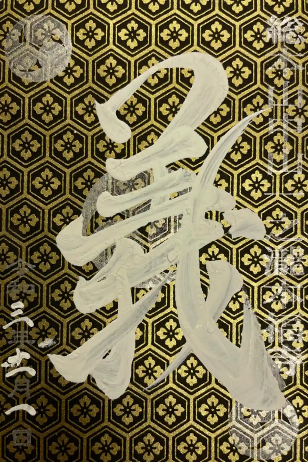 黒和紙に合う様、色味を若干変えて直書きして頂きました