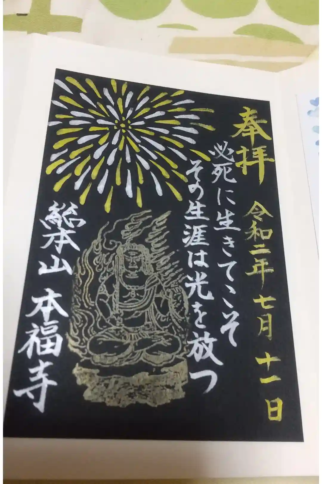 黒和紙に直書きして頂きました