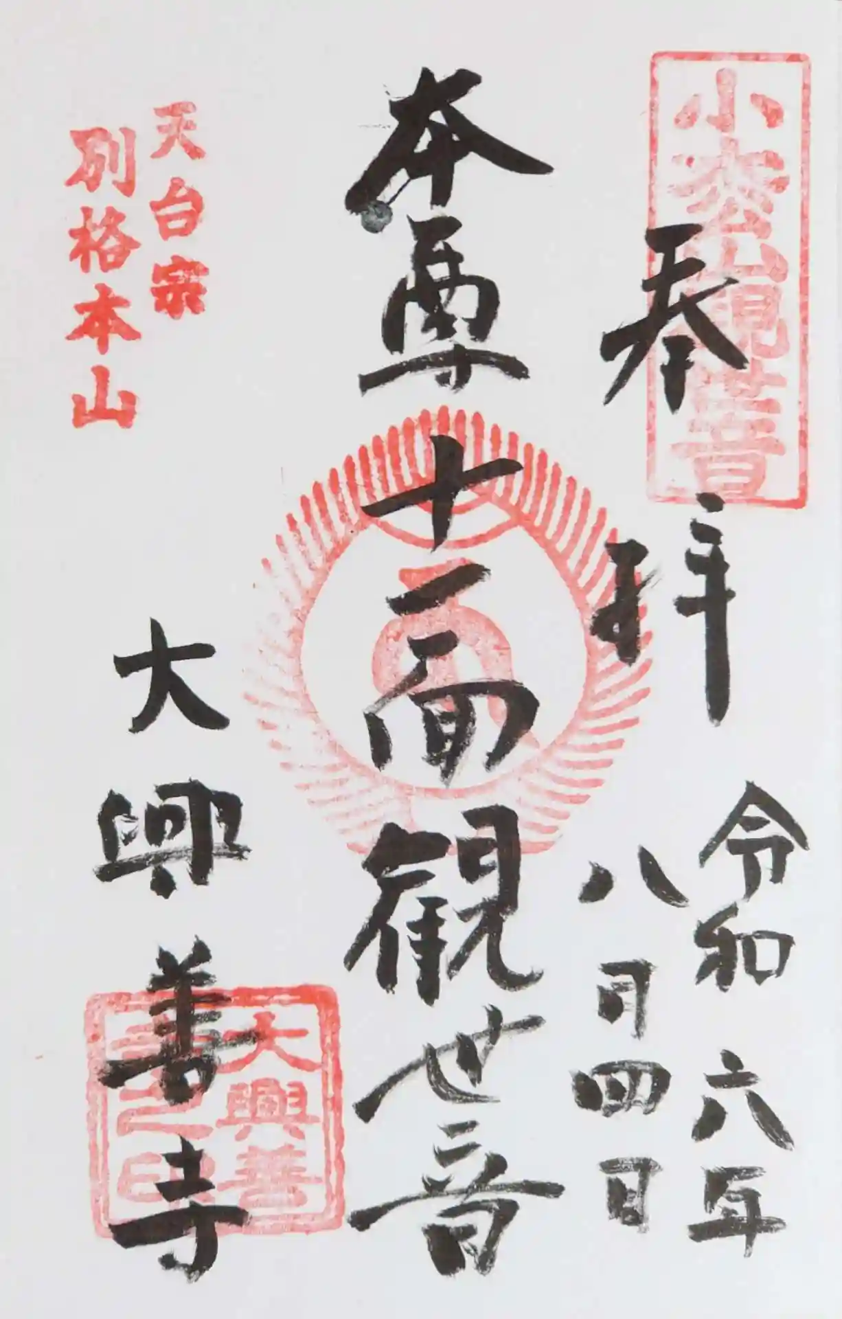 本堂ではなく、奥にある観音様の御朱印です