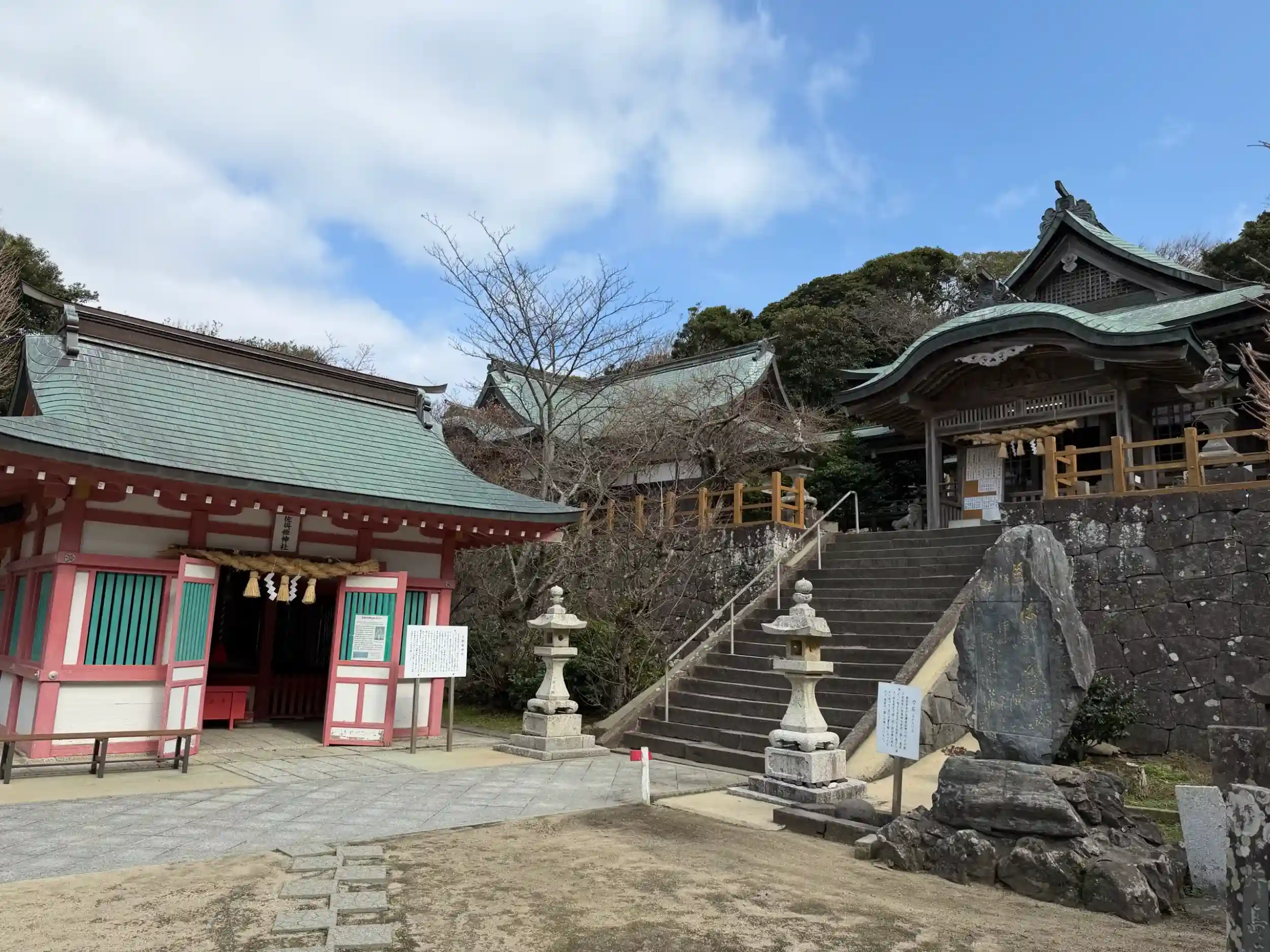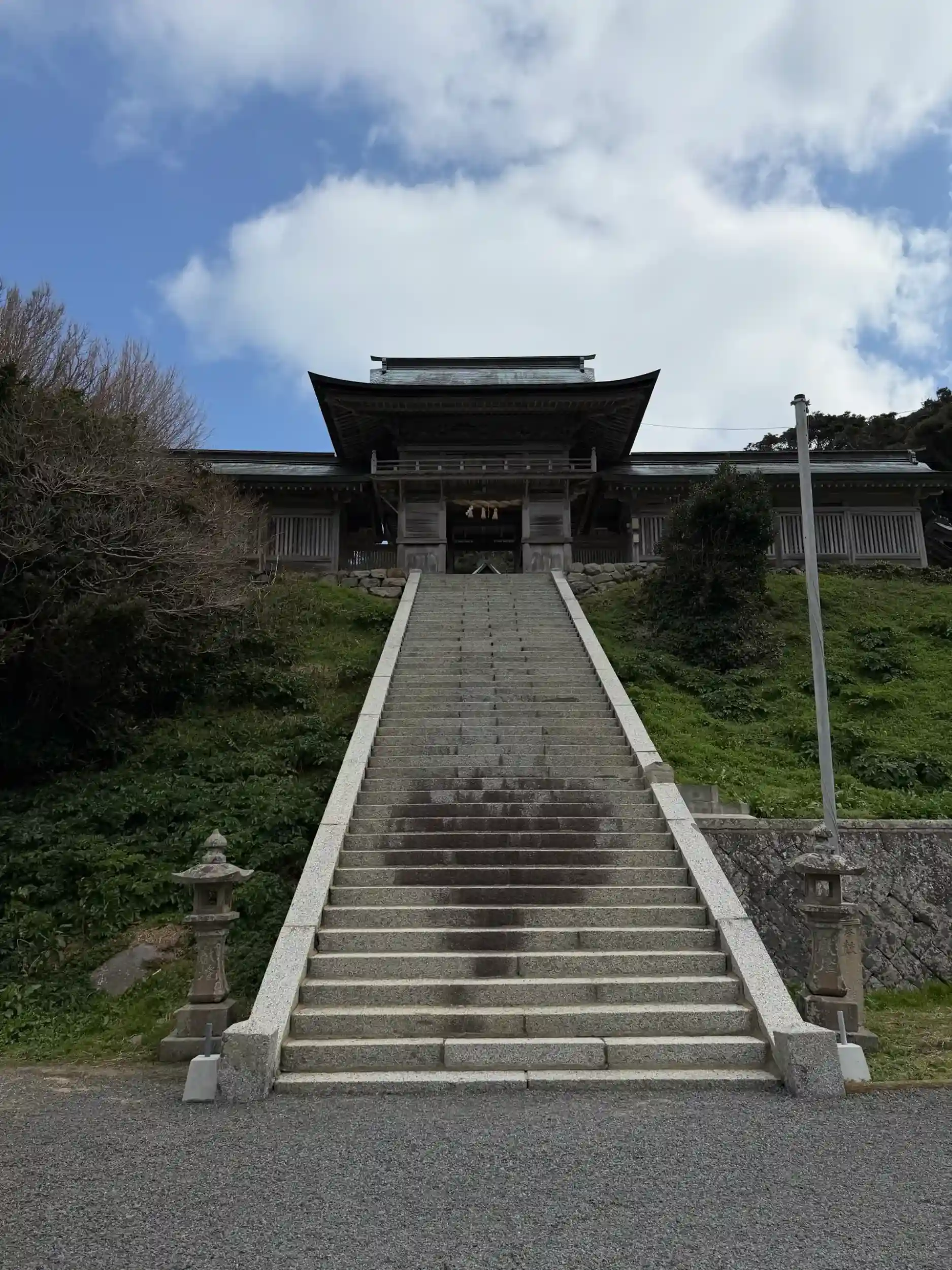 階段を登ると見える境内