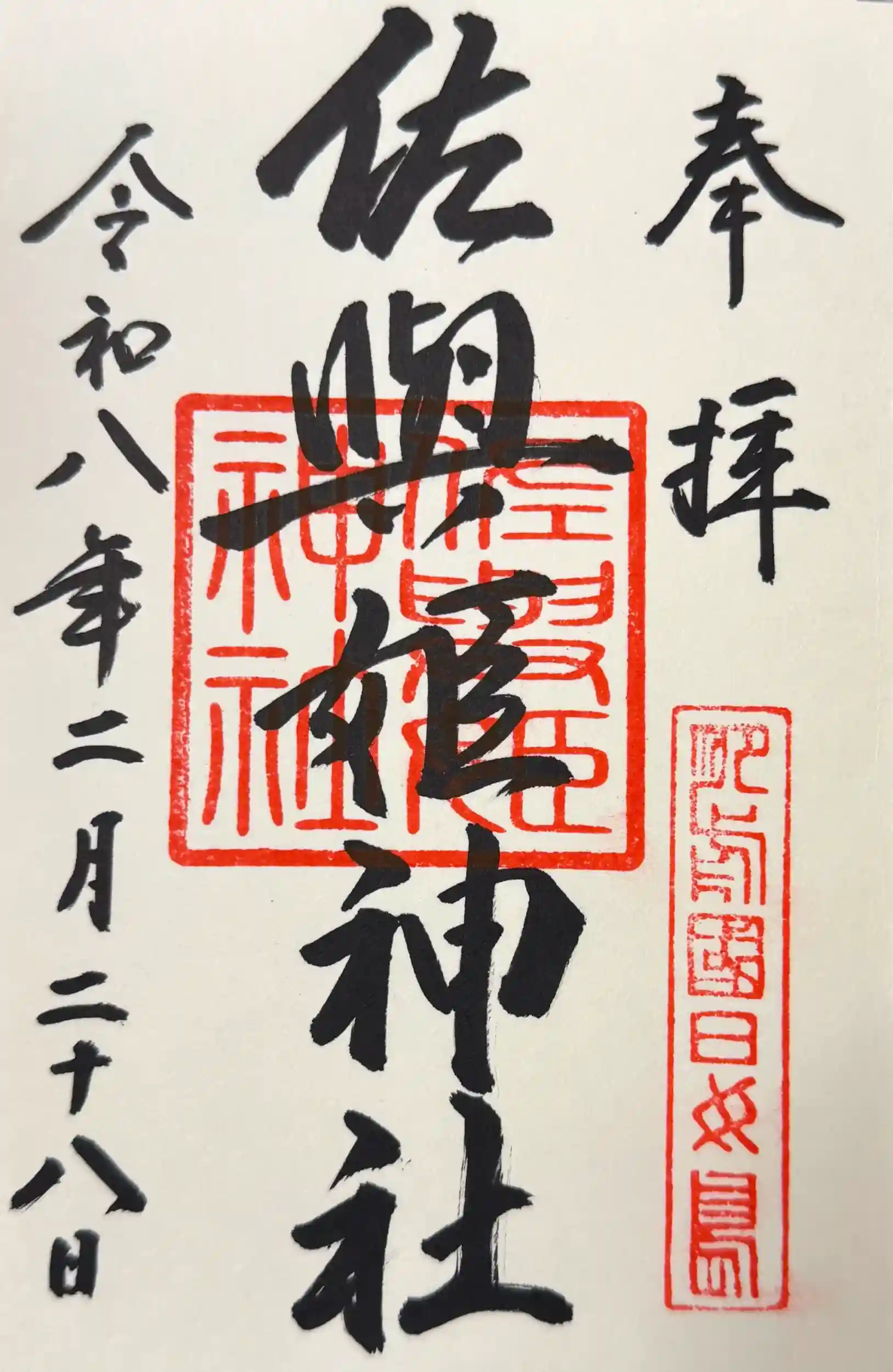 境内の「佐與姫神社」の御朱印を直書きで授与いただきました