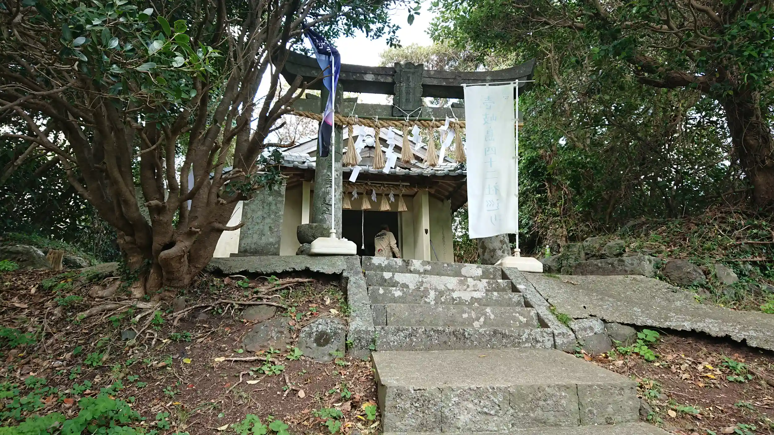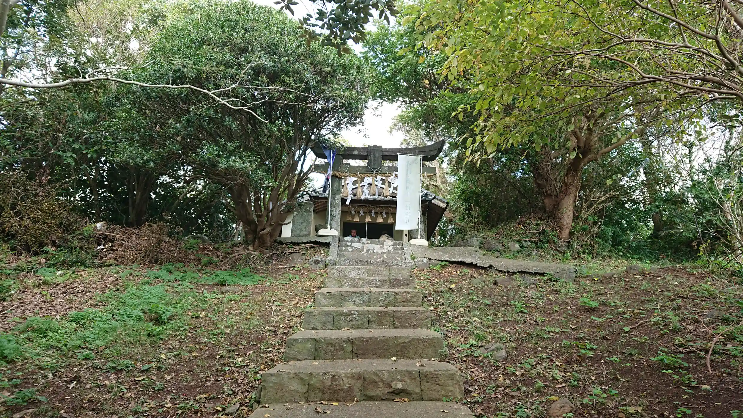 島の最高地点に建つ鳥居と社殿です。