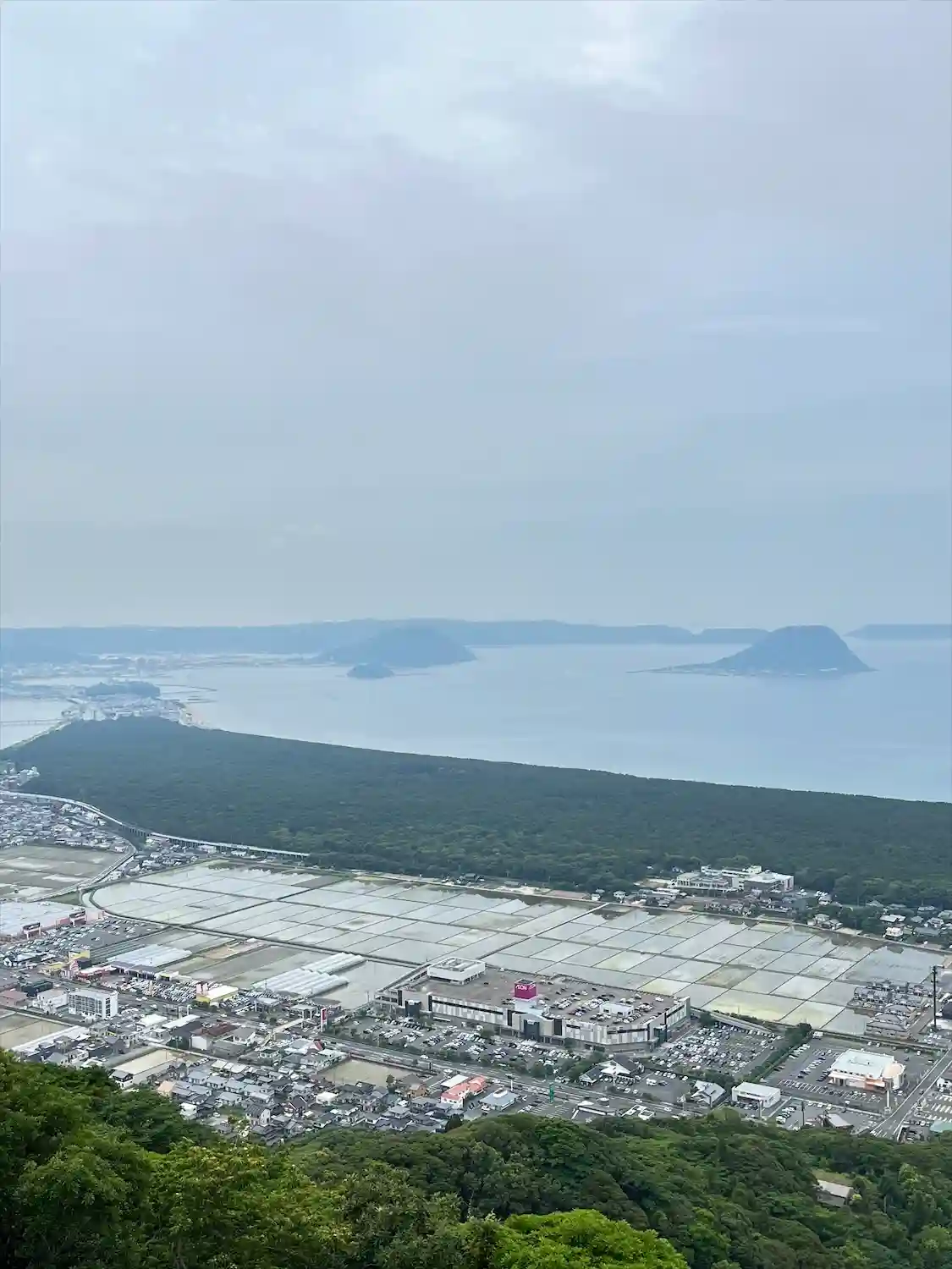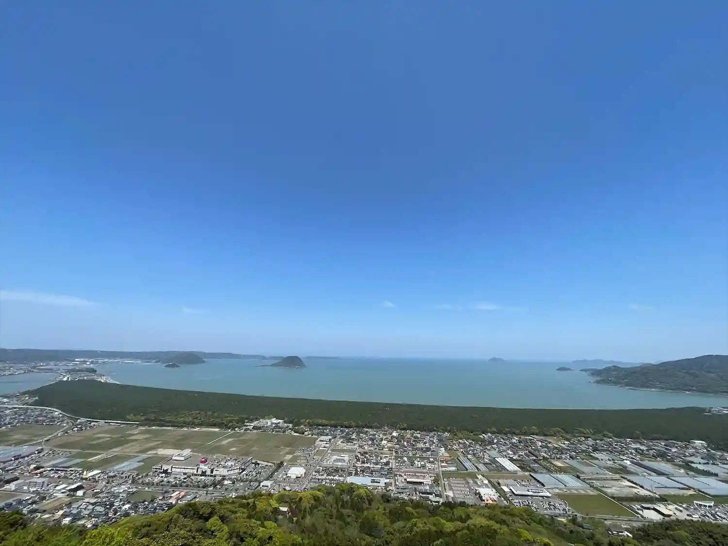 鏡山展望台から唐津城の海と虹ノ松原