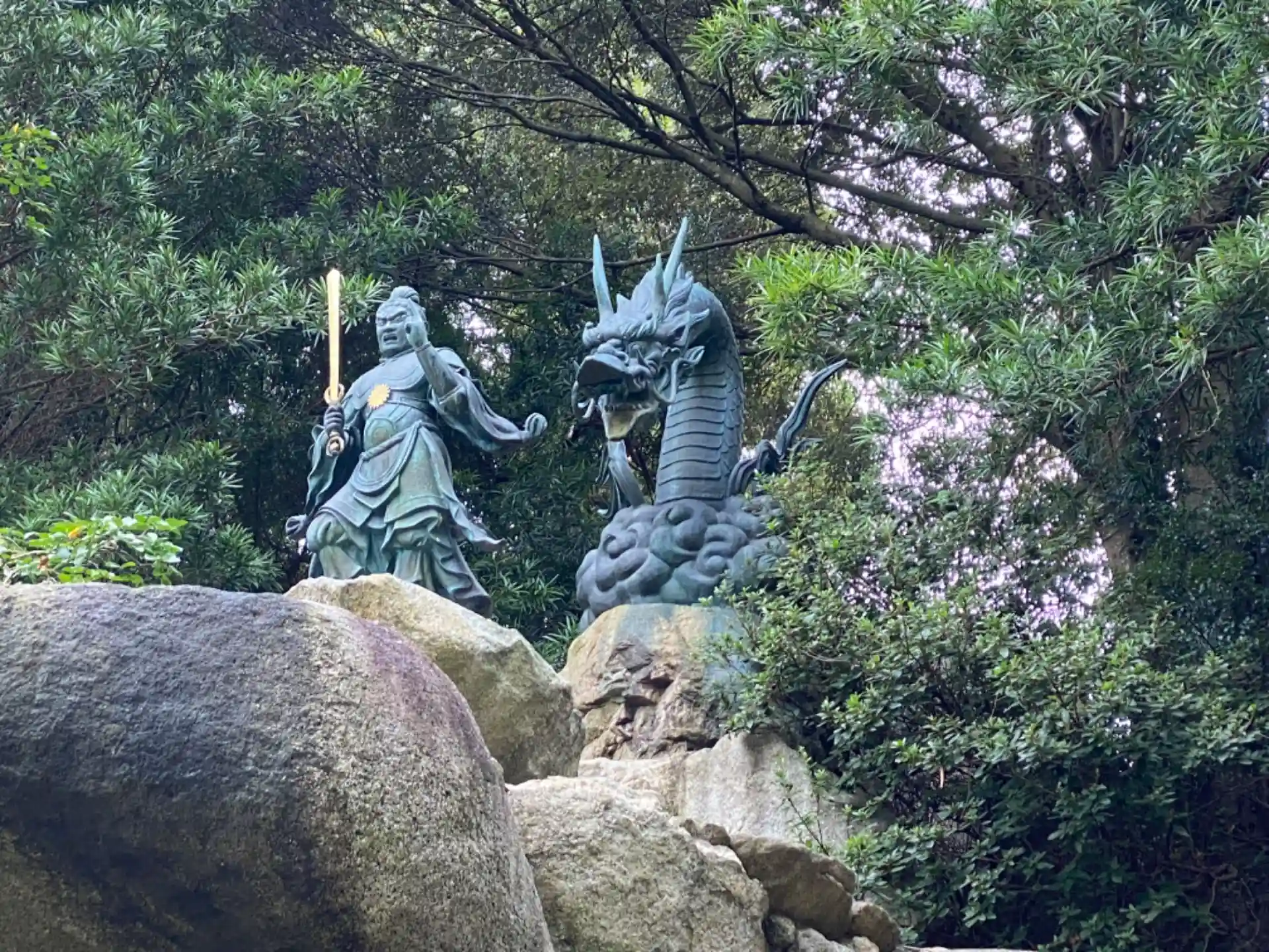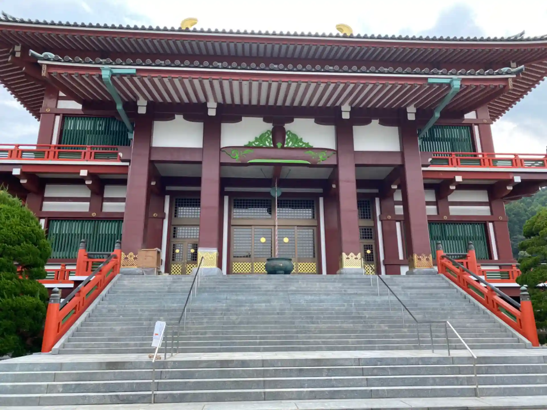 正法事門法華宗⁉️総本山が唐津市‼️ならば行かなくては…。と思いはや3ヵ月。やっと行く事ができました。バカデカいです。中門が工事中で通行出来ませんでした。寺務所入口から2階の本堂へ行き、参拝し、階段を降りると寺務所のお姉さんが居たので、「御首題頂きたいのですが」と言うと、「御首題?」と聞かれ、「南無妙法蓮華経です。」と言ったらわかってもらえて、御朱印帳を預けて、境内を散策。奥の院まで行ってきました。