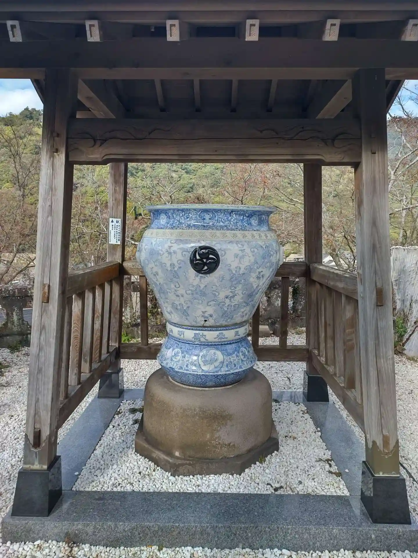 木製の欄干の奥にこちらも陶器製の欄干が置かれています。