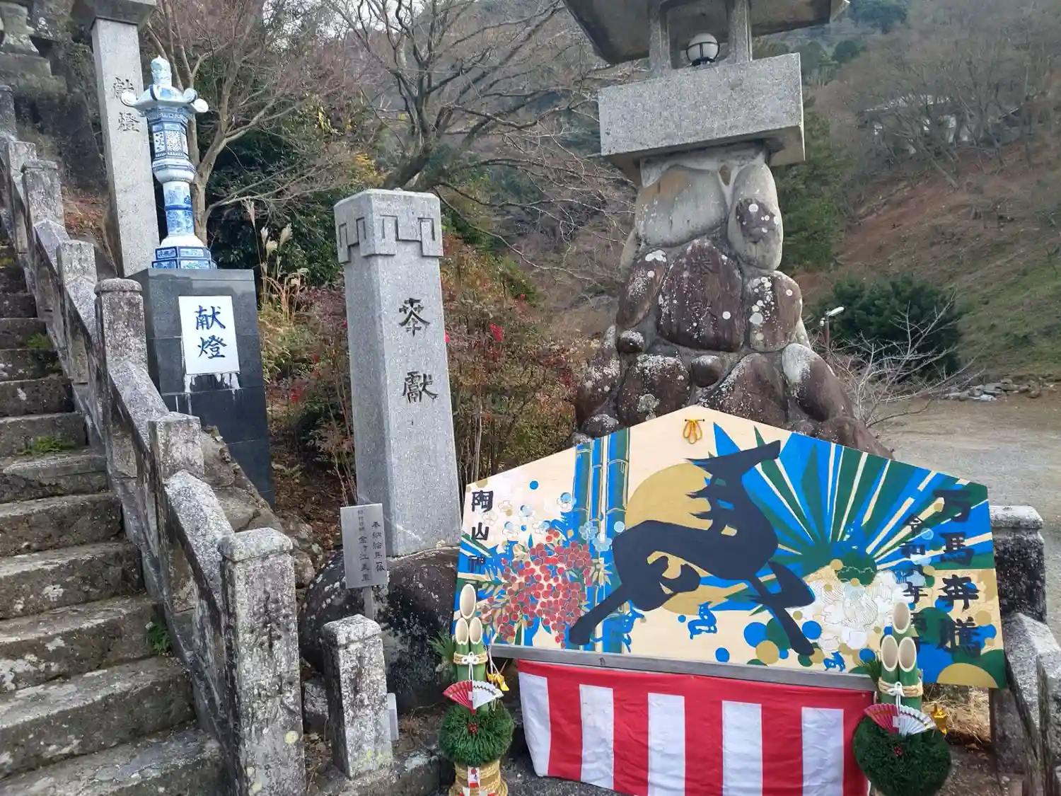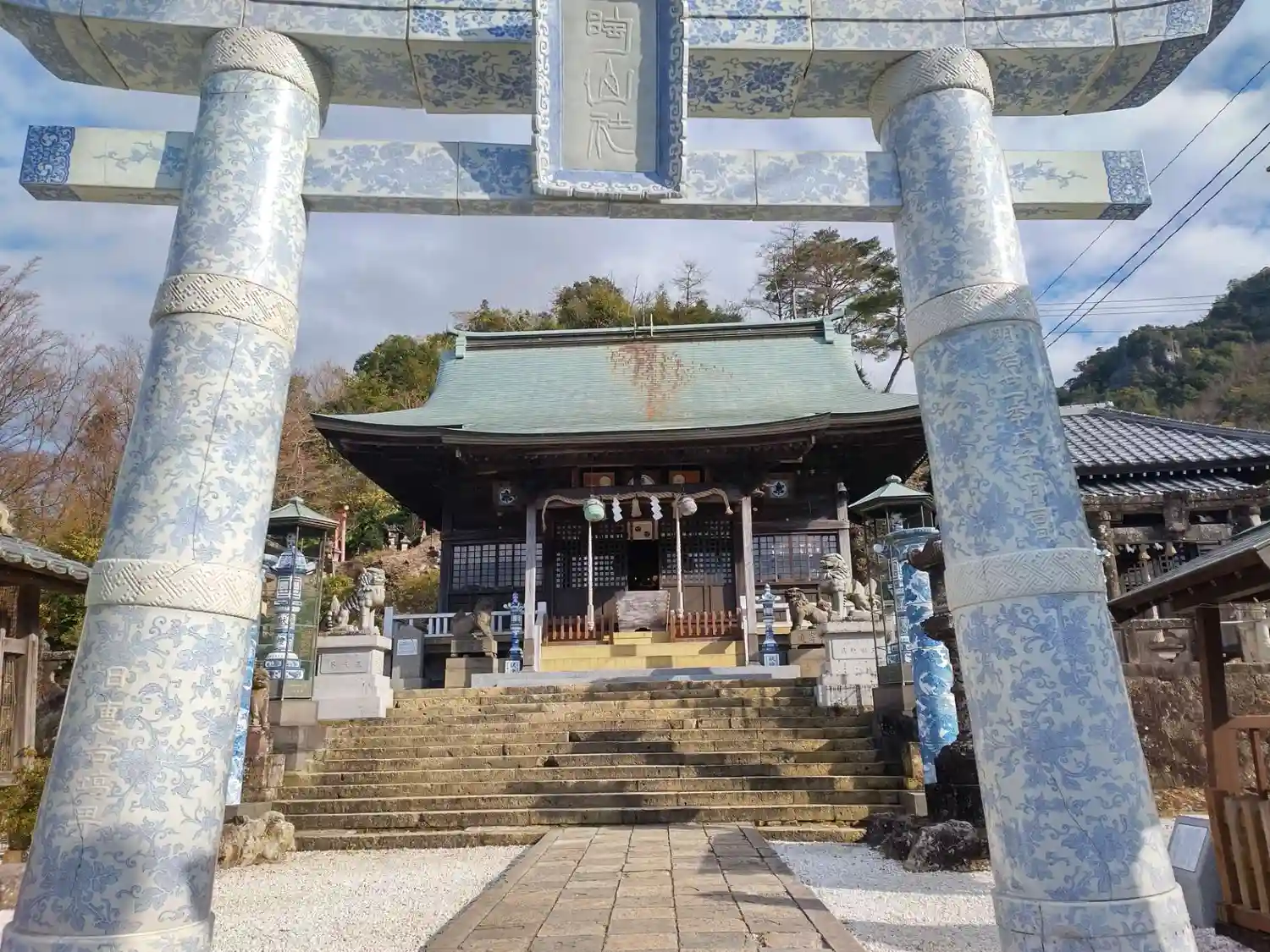 本殿前の階段(灯籠や奥に見える鳥居も陶器)