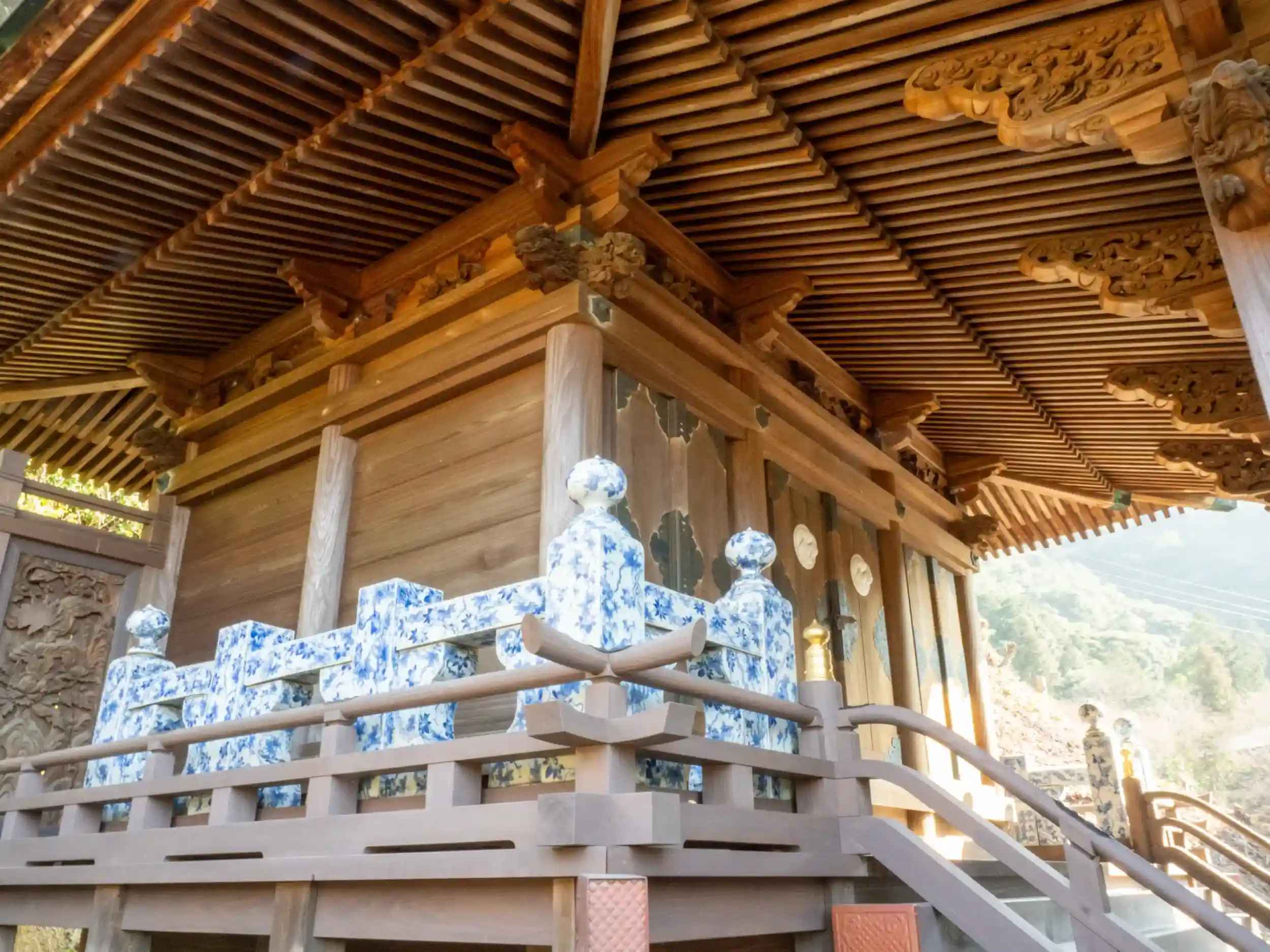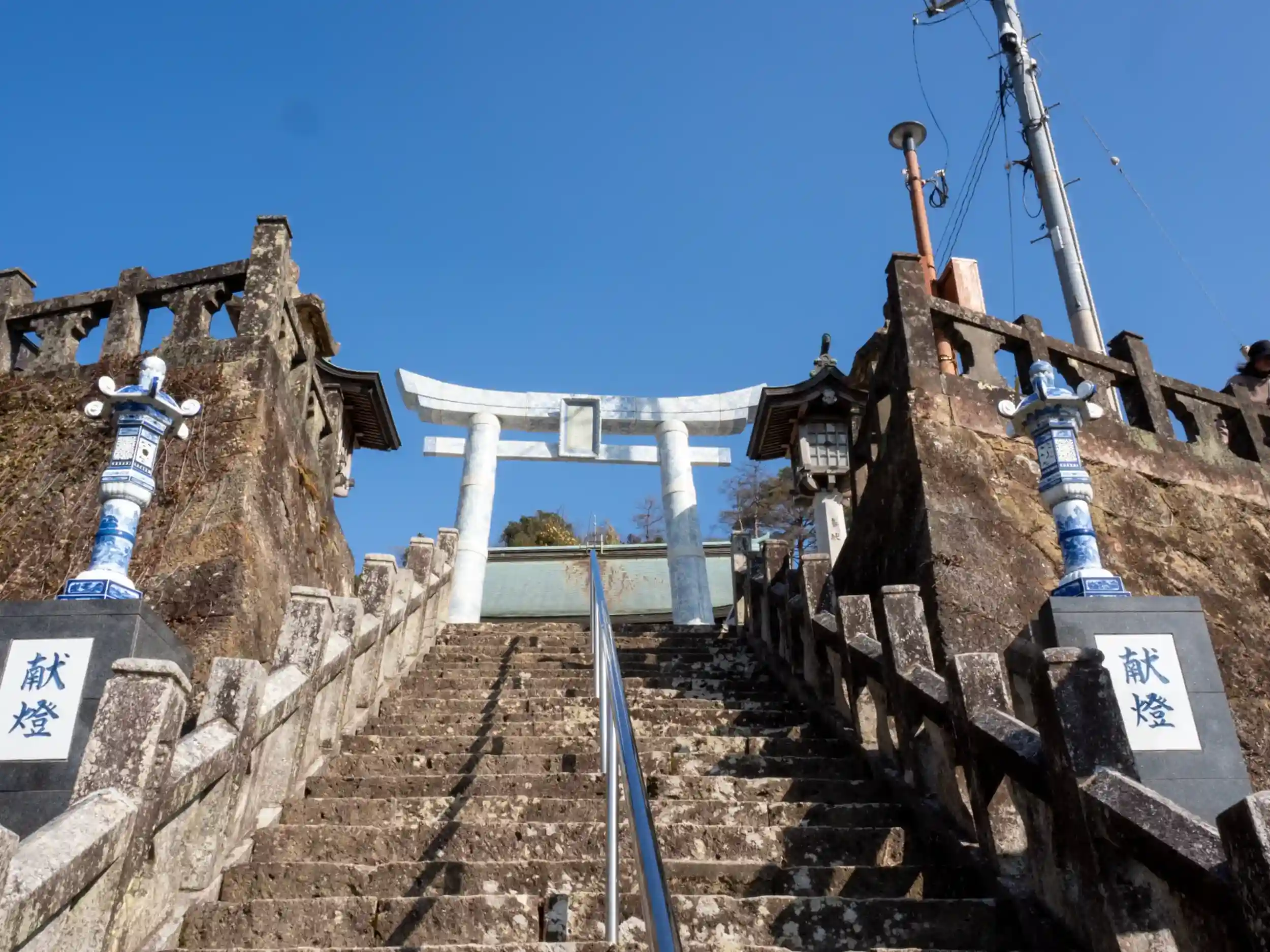そこから石段を登っていくと青い陶器の鳥居が!
