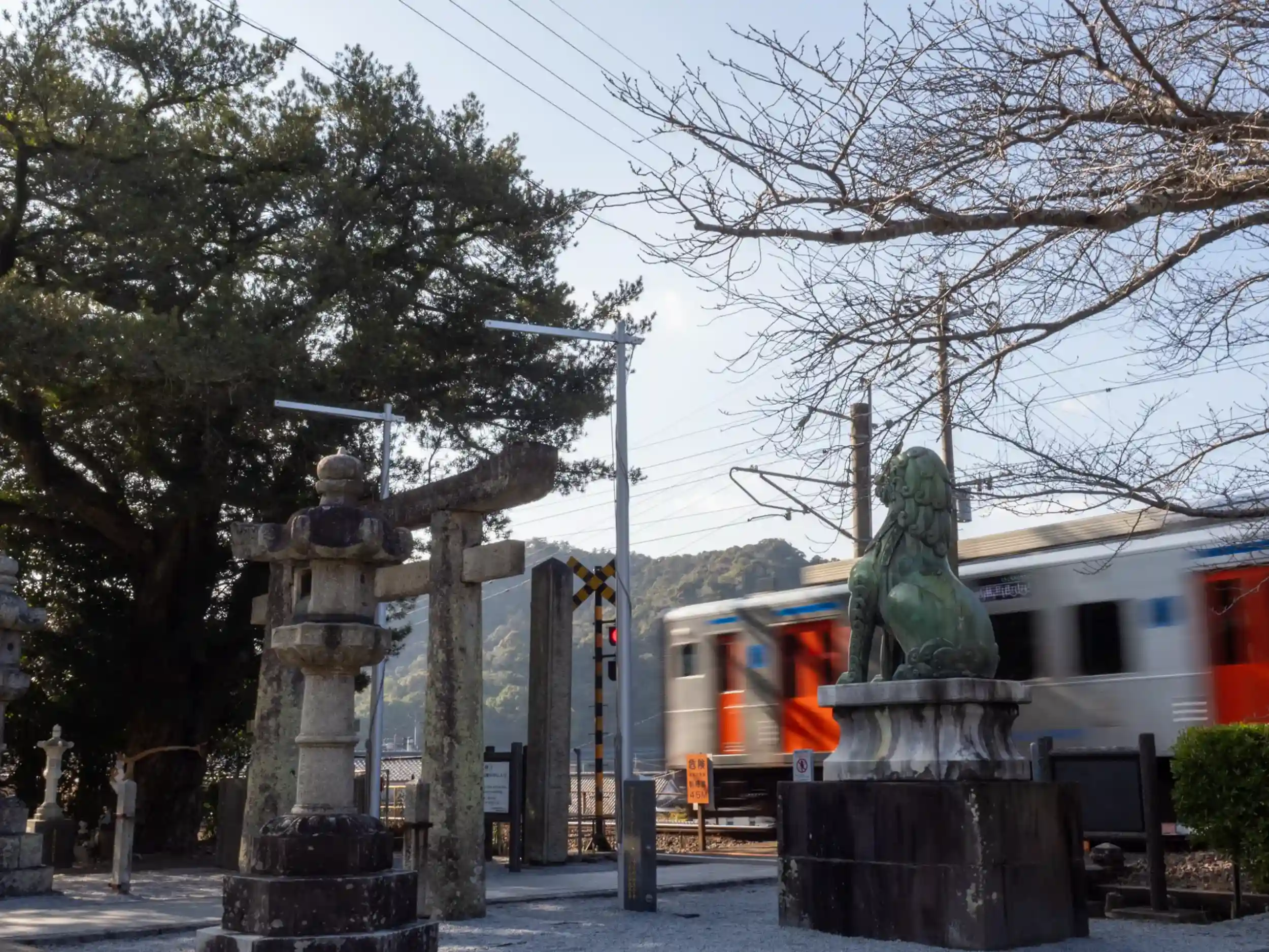 鳥居の手前が踏切になっててちょいちょい電車が通るんですがバーがないので通れちゃう😱