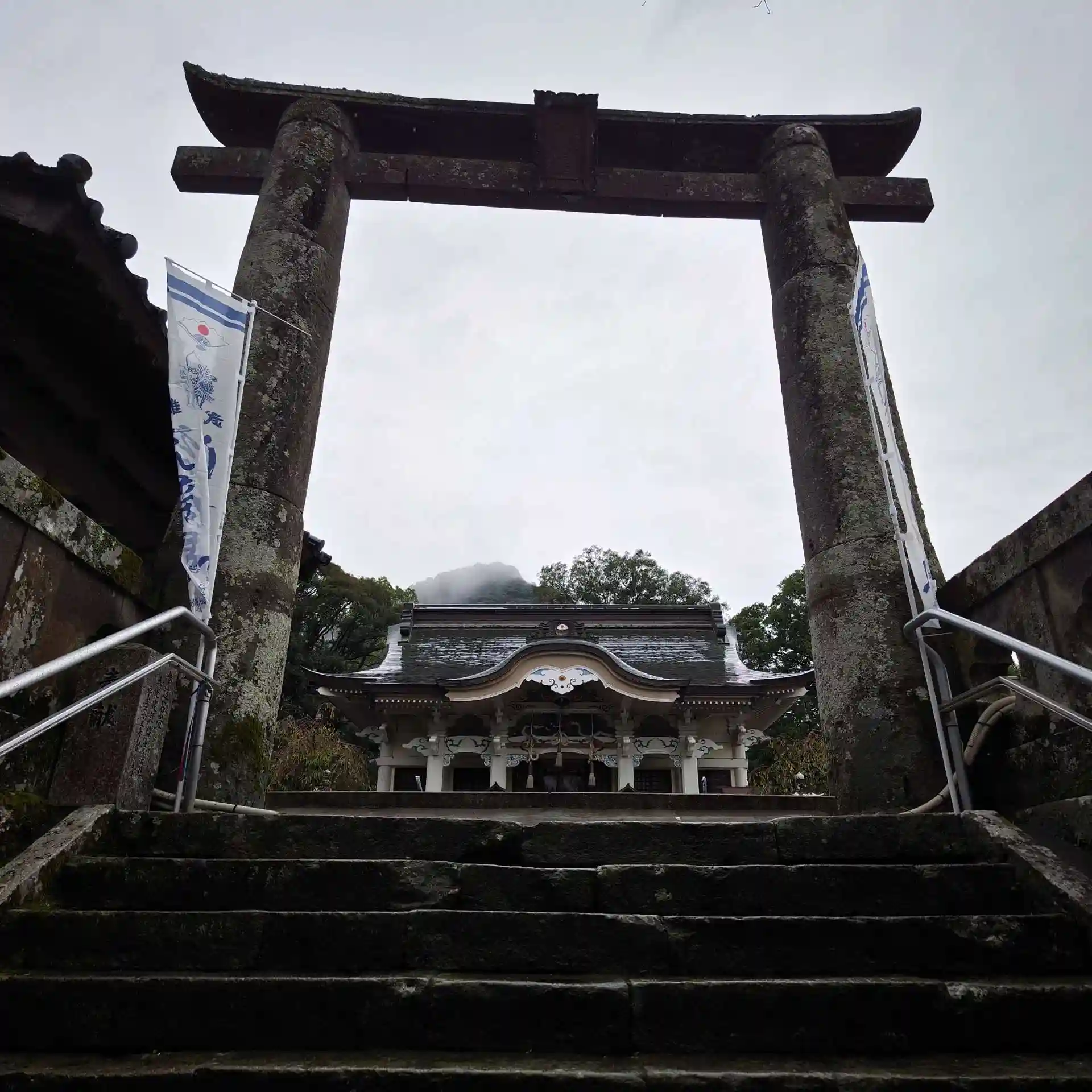 急な石段に帰りに気付く