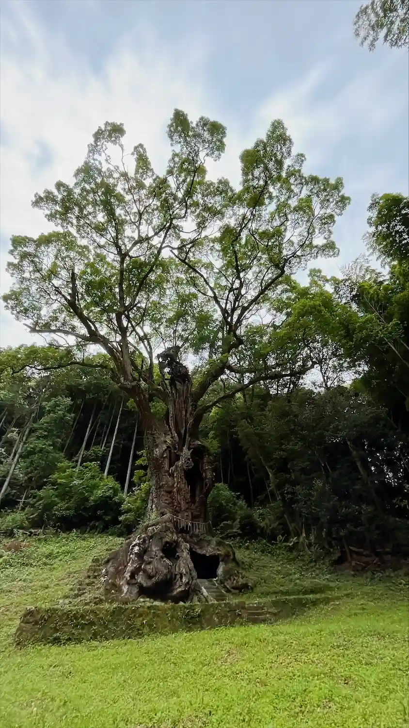 神殿からさらに奥へ紅葉トンネルを抜け竹林その先には樹齢3000年の大楠🌳