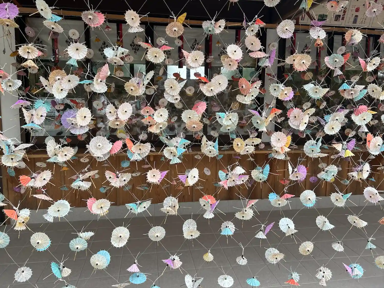 小さな和傘が吊るしてあって カラフルでとてもかわいい⛱️☂️💗