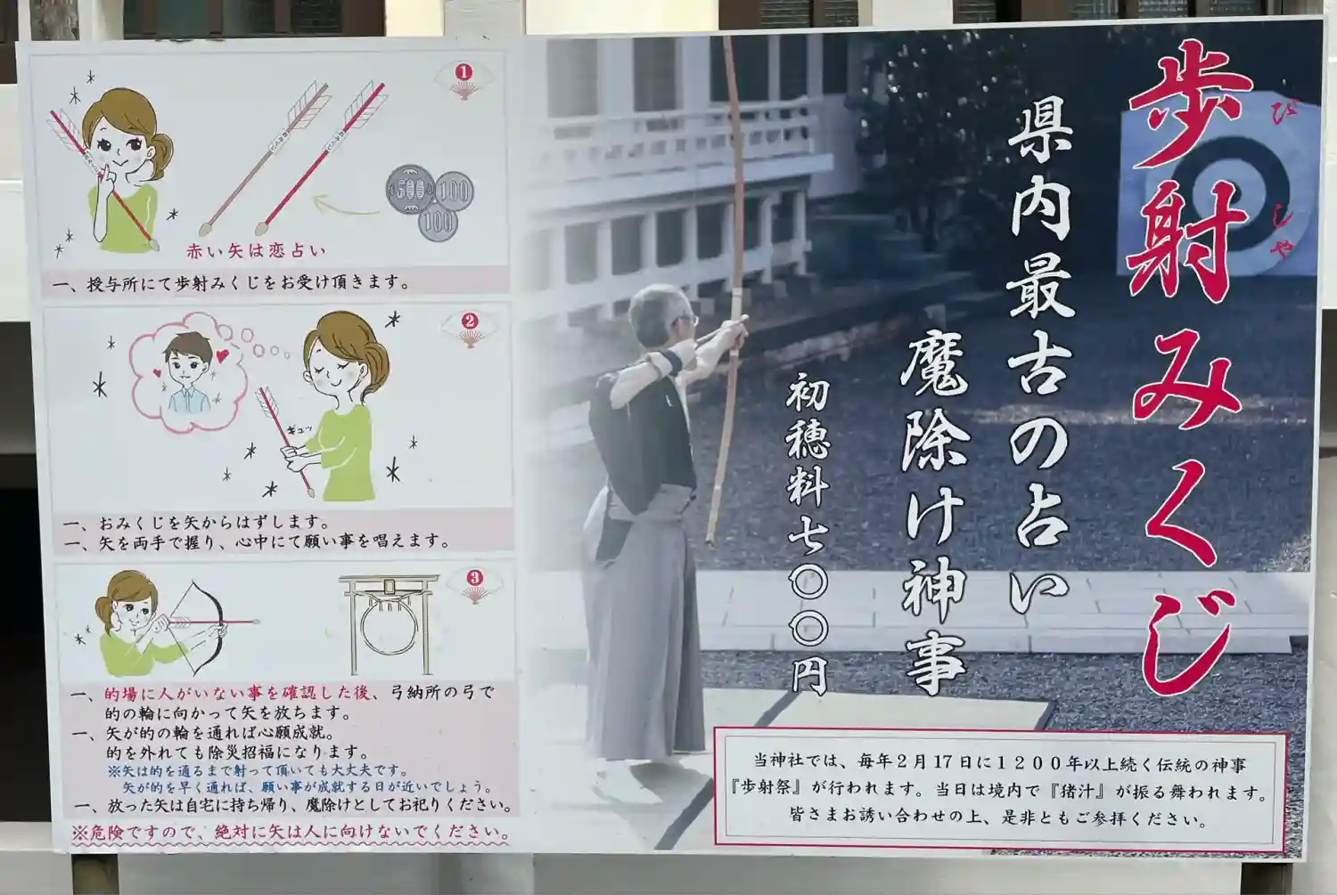 射る場所は、的に近い女性子供用と、的から遠い男性用がありました。