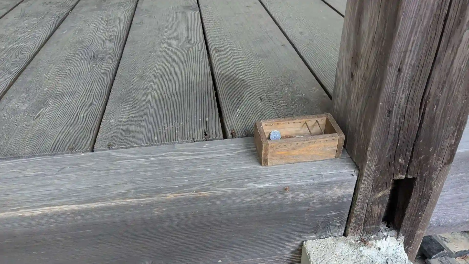 分かりにくいですが御賽銭箱はここ