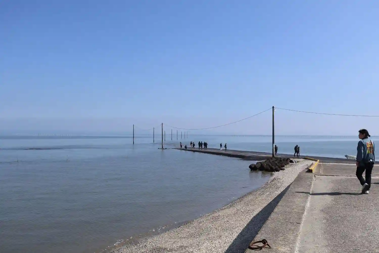 海中鳥居の横には海に入って行く堤防?もあり…