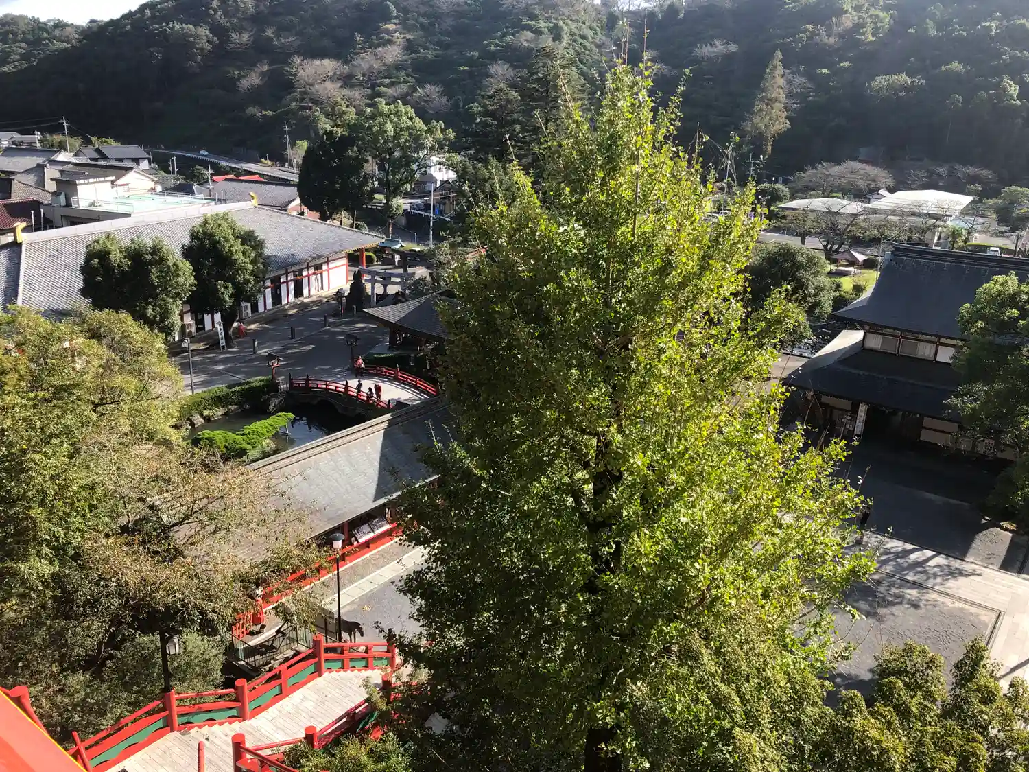 振り返ると、紅葉🍁した木々と朱色のなんと美しいこと!