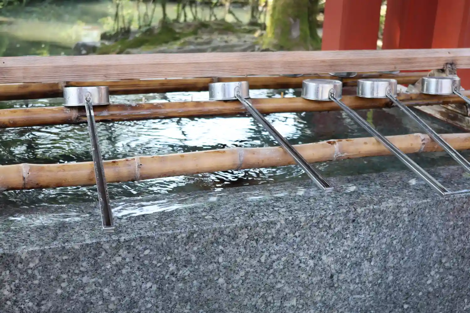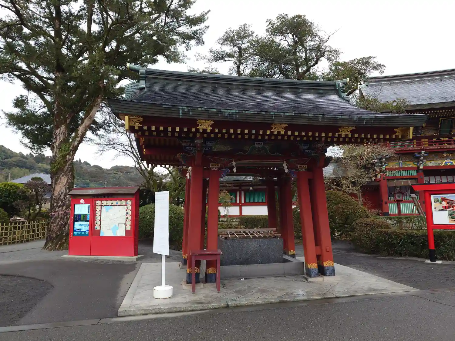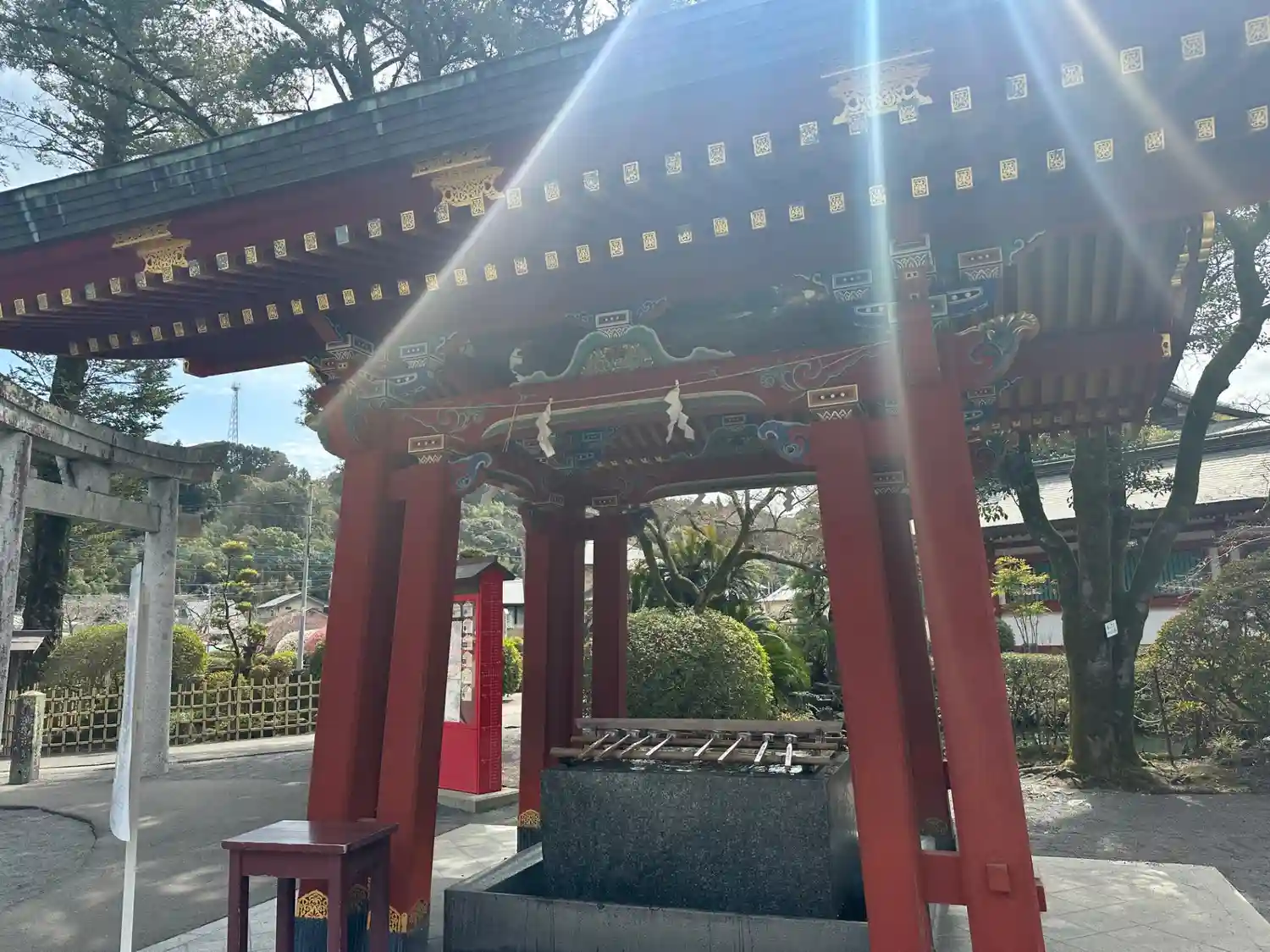 手水舎は上の方に白いハスのような花が可愛いかったです