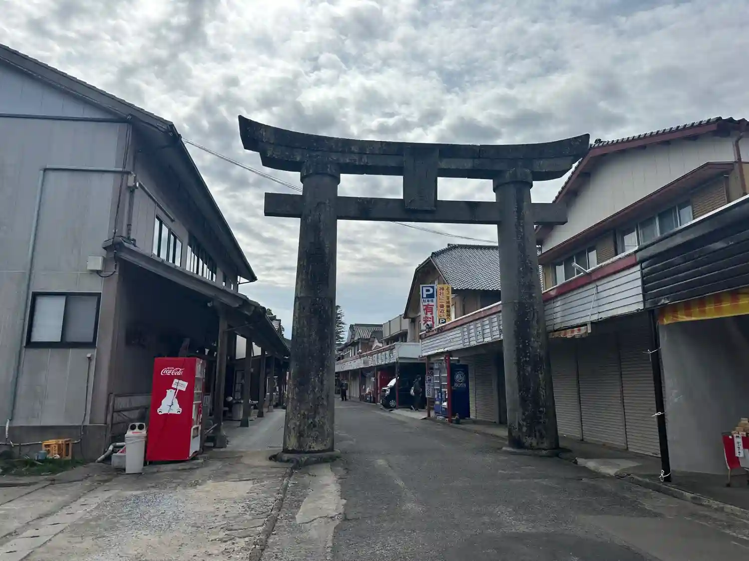 バス停から程なく大きな鳥居が見えてきます。