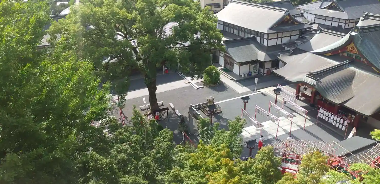 こちらの舞台造は1949年に火災により焼失しており、現在の社殿は1957年に鉄筋コンクリートによって再建されたそうです。。建築は角南隆(すなみたかし)。明治神宮や平安神宮など、手掛けた建築家とか。