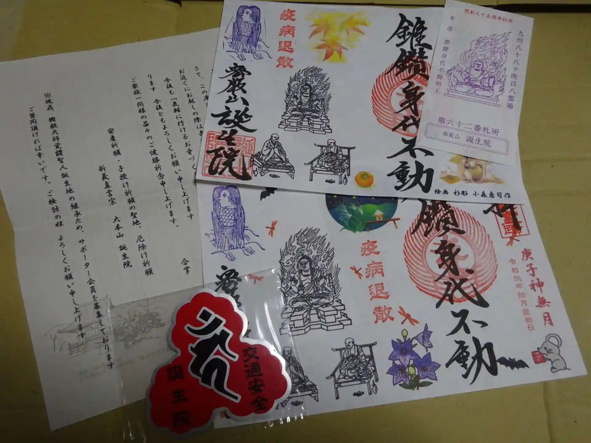 ホトカミさんへの投稿をフラフラ見ていて目に留まったお寺様^^ 佐賀県所在のお寺でそう簡単にお伺いとは行かないんで^^; 御朱印と併せて交通安全ステッカー郵送していただきました^^ 郵送の問い合わせの電話を入れたときご住職不在で翌日掛けなおしますと告げた所 特に連絡先も告げなかったのにご住職の方から翌日掛けなおしていただけるというハプニング^^大変親切に対応していただきました 同寺のホームページに疾病退散 世界平和祈願 新型コロナ感染者物故者追善供養のお勤めの為の写経を届けてください・・・との呼びかけが その趣旨に賛同^^只今その写経に取組中!! 近日中に送りたいな~と思っている所です^^