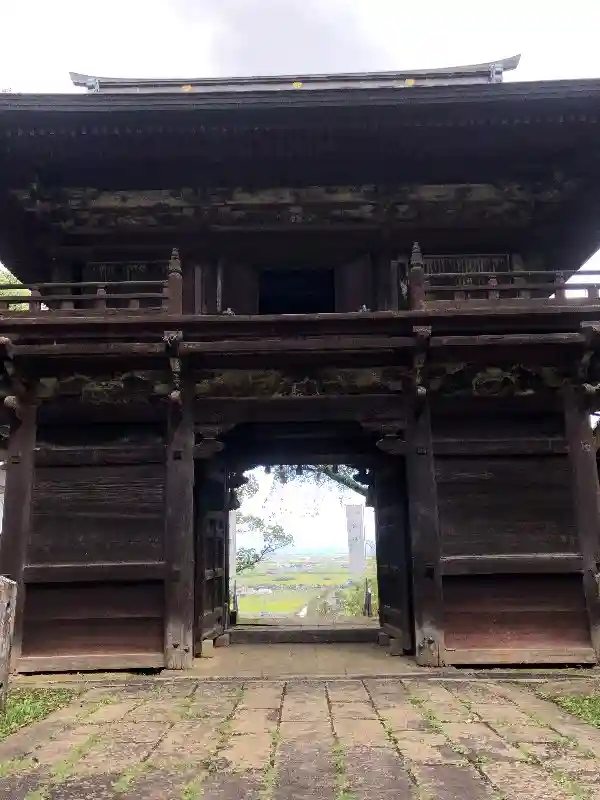 楼門を境内から見ると水田と有明海が見渡せるいい景色です。
