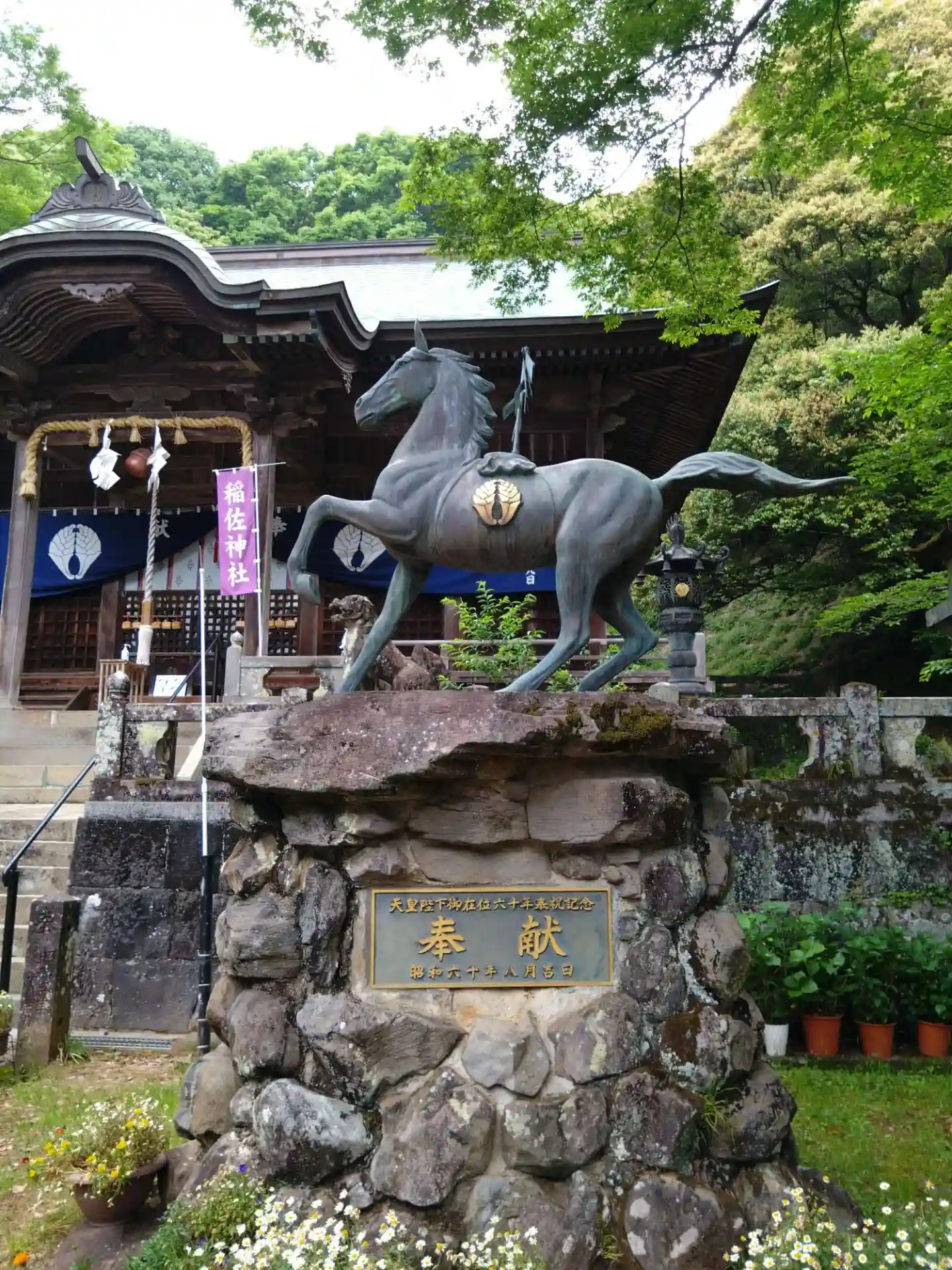 稲荷神社拝殿前のかわいらしい年代物の神馬さま