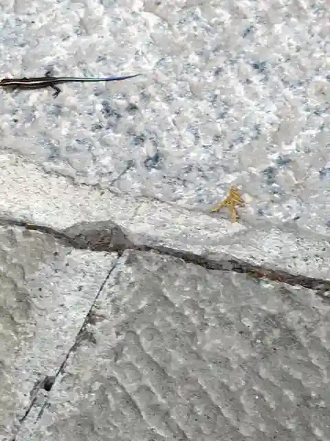 トカゲがいて尻尾が本殿と似たような色でした。