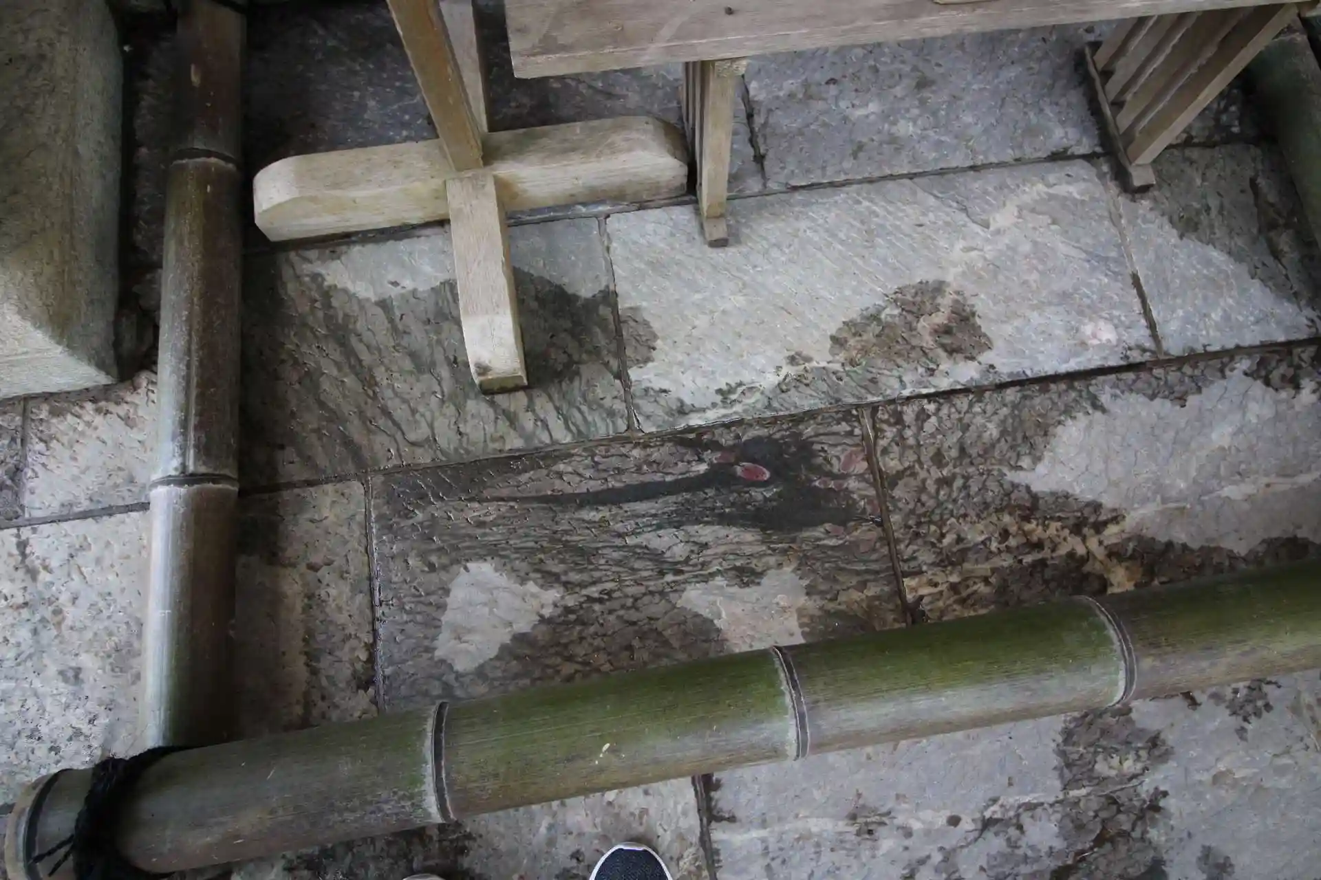 石畳に龍神さま!水をかけると浮かび上がる龍神さまを見つけたらラッキーと。見つけました。