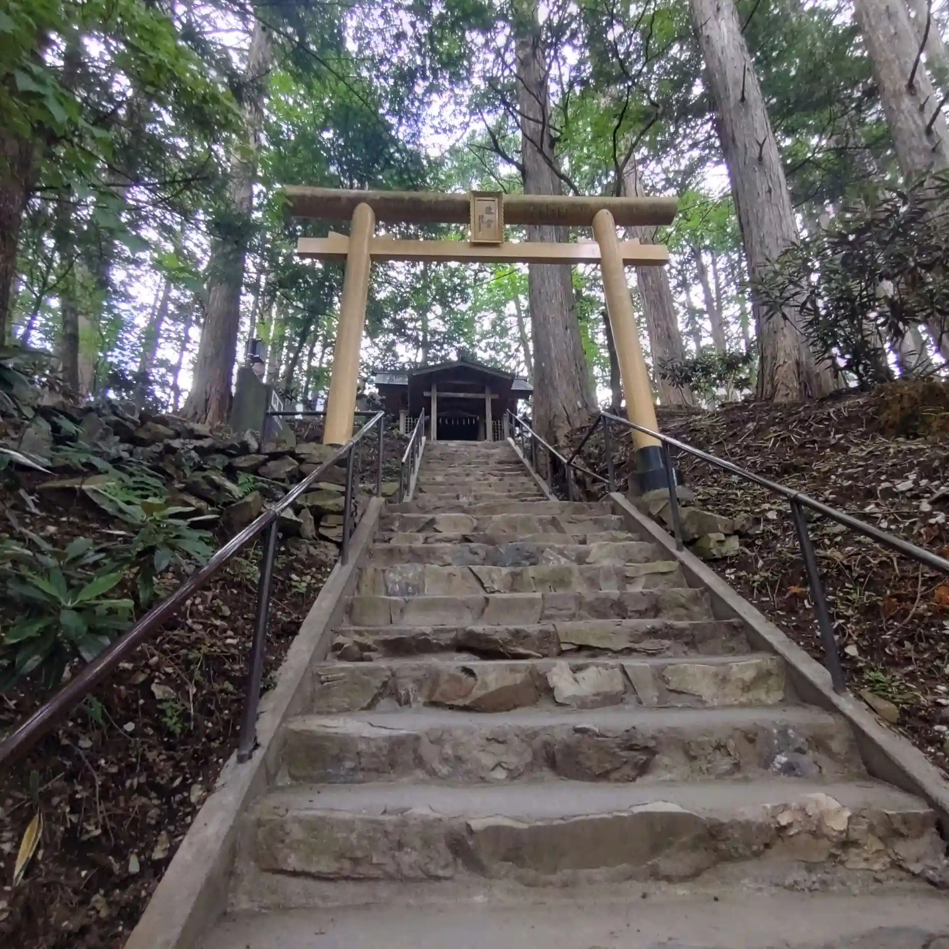 深い山中に身を潜められているためここを仮のお宮としている