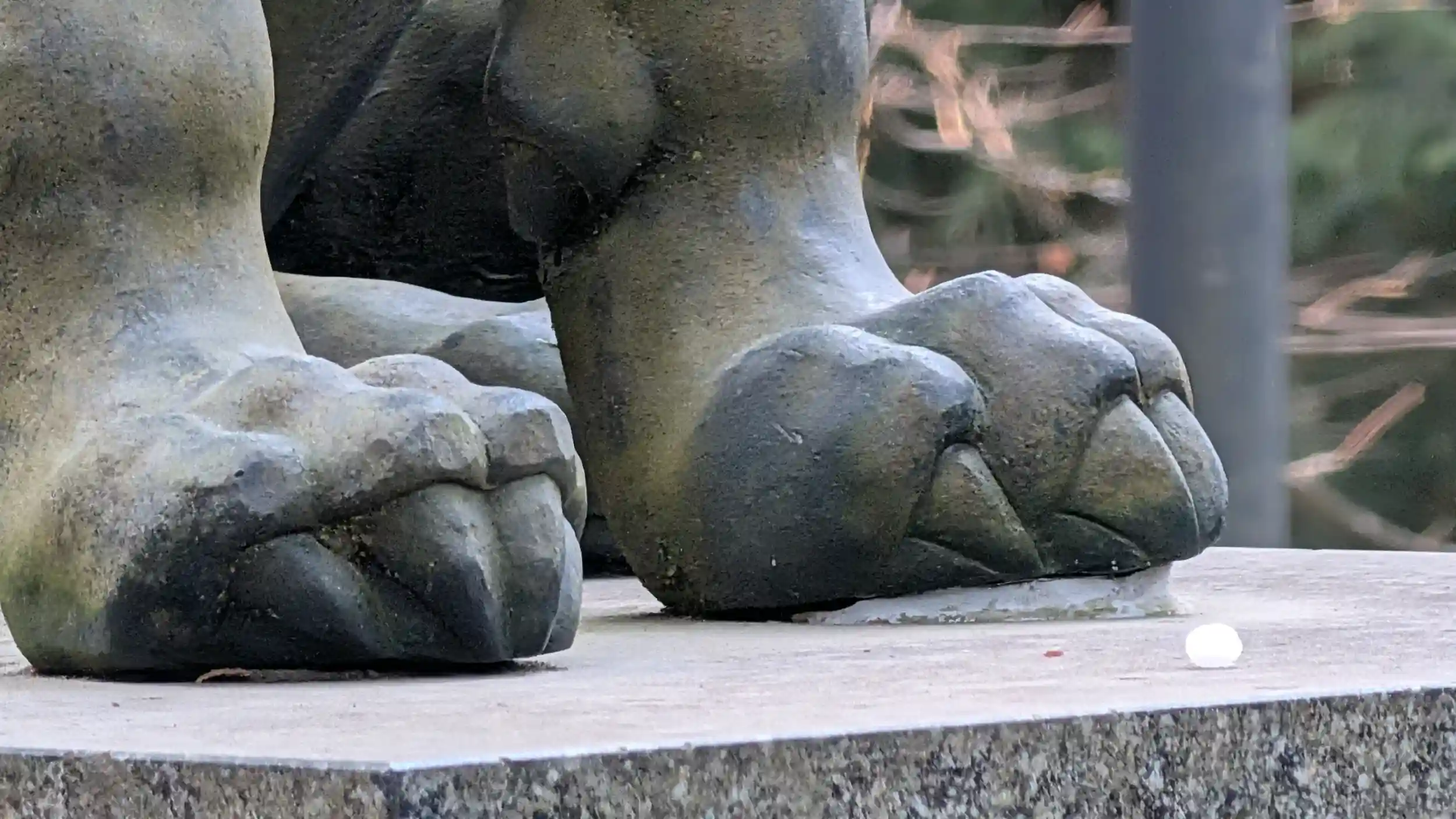 狛犬の足元にある白い物が気になった