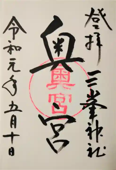 三峯神社奥宮の御朱印