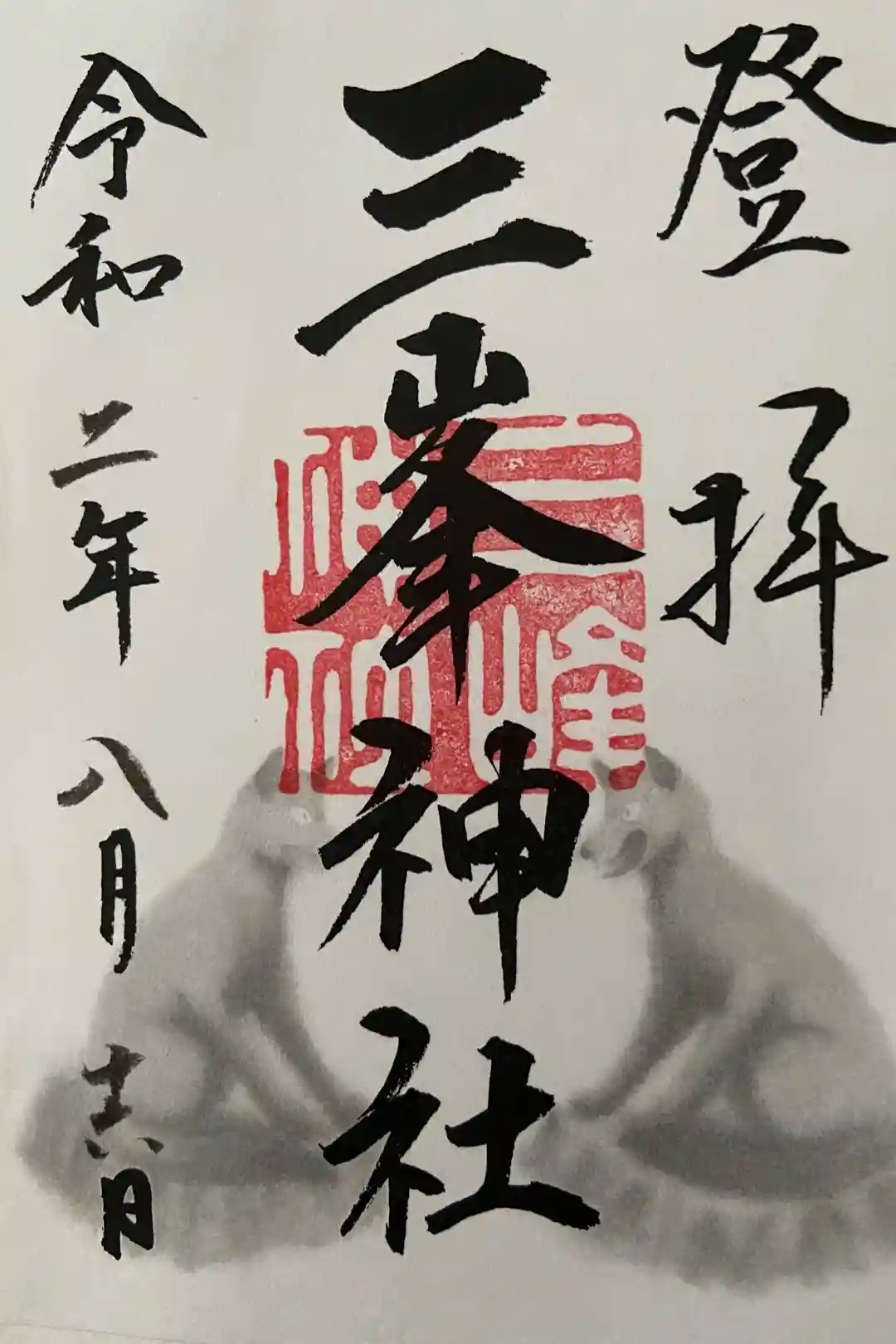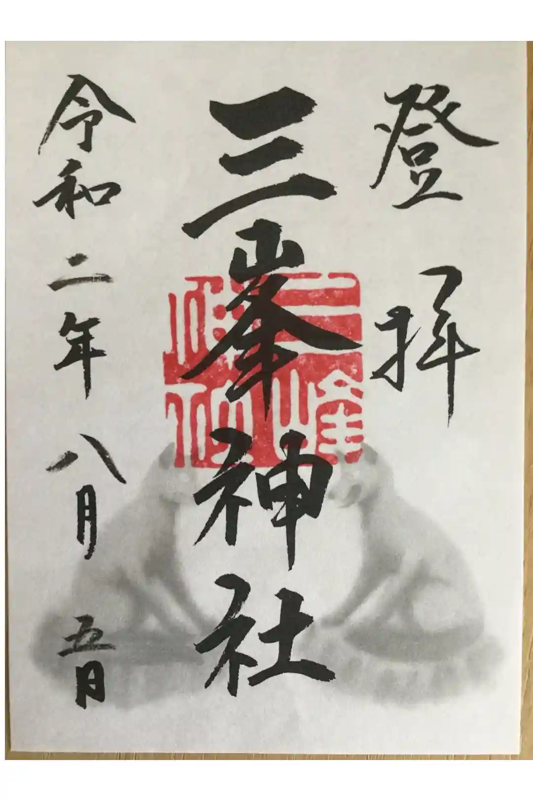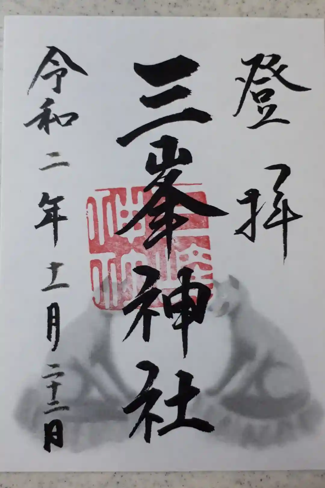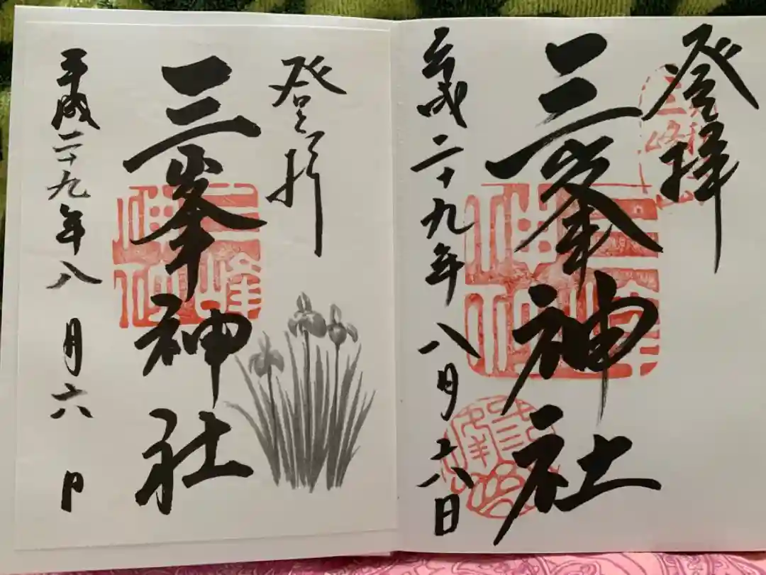 三峯神社でいただいた書き置きの御朱印。