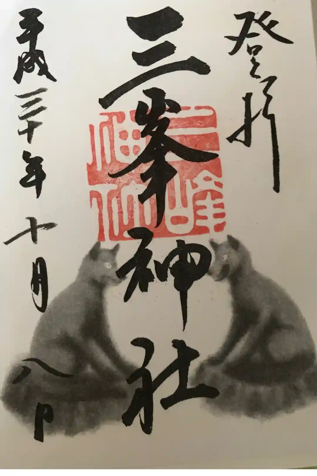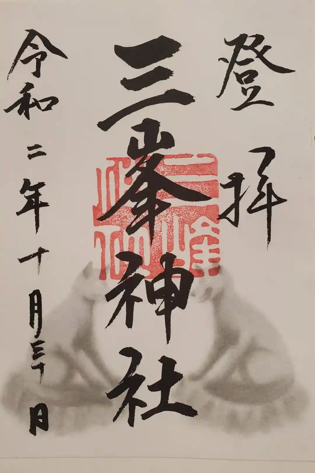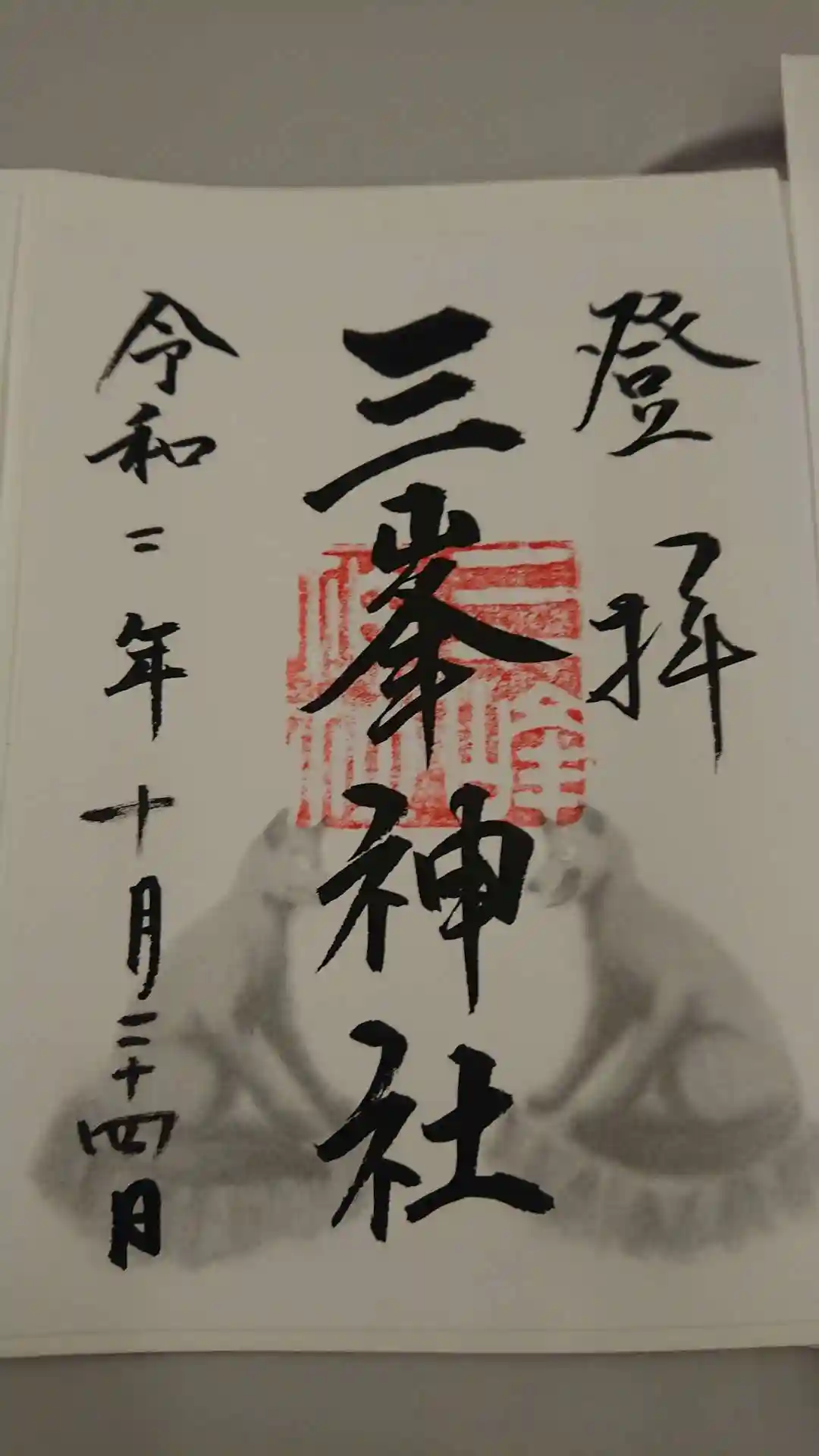 三峯神社でいただいた書き置きの御朱印。