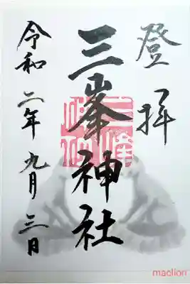 三峯神社御朱印