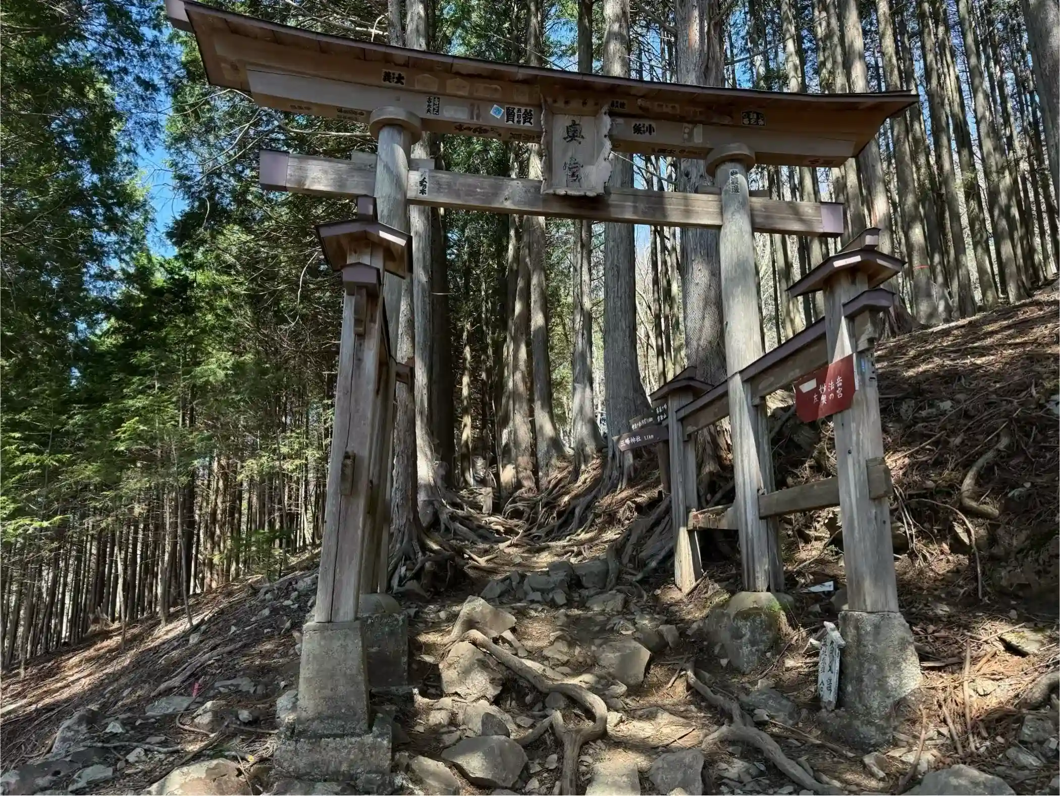 三峯神社の奥宮参道入り口から一個目の鳥居までは緩やかな林道なので、そちらまで行ってみるのも良いかもしれません🚶