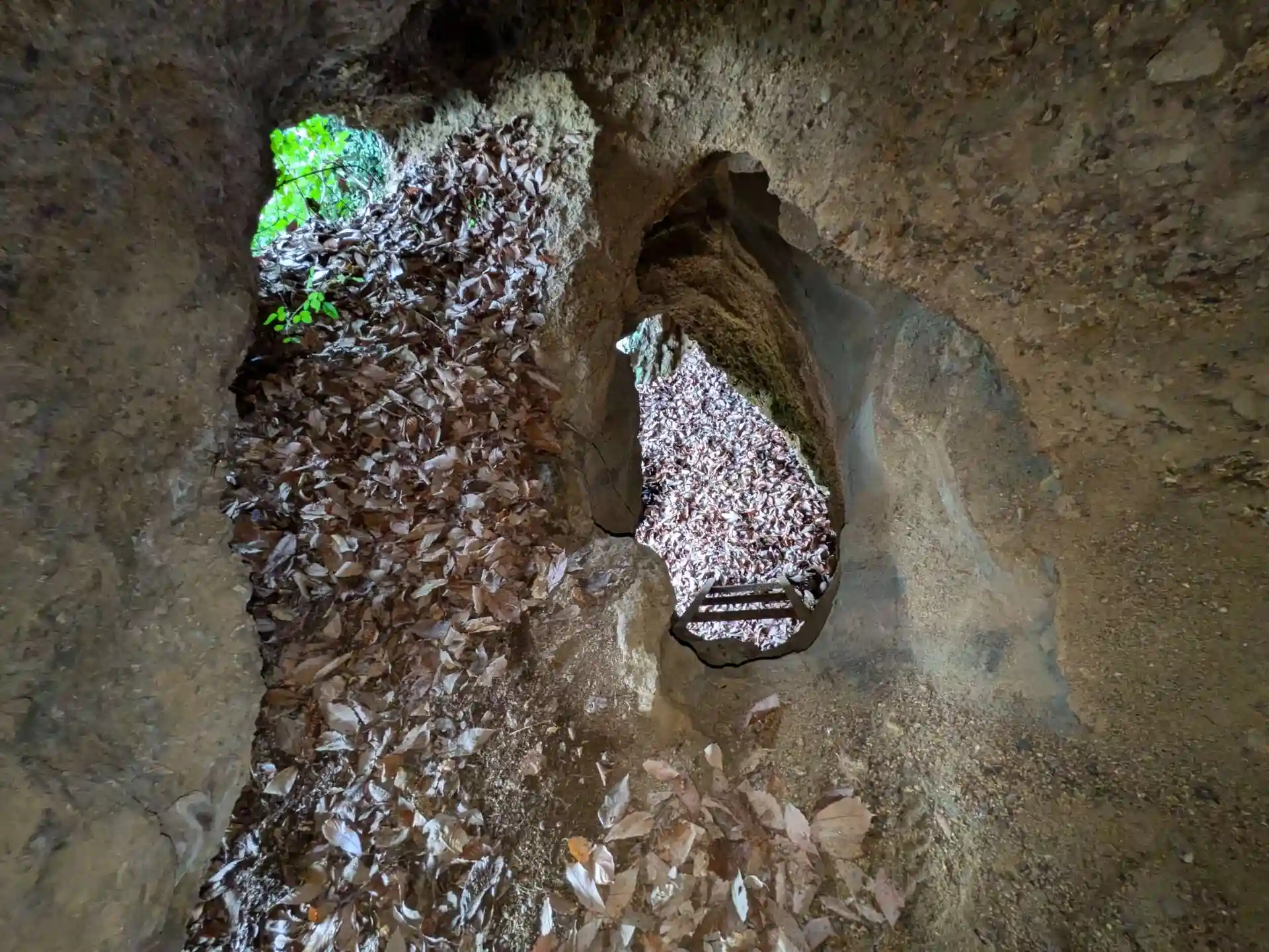 山道の“枯れ葉”は要注意、穴が開いてるかも?なので普通はポールで確認して通りますが今回無いので不安です。