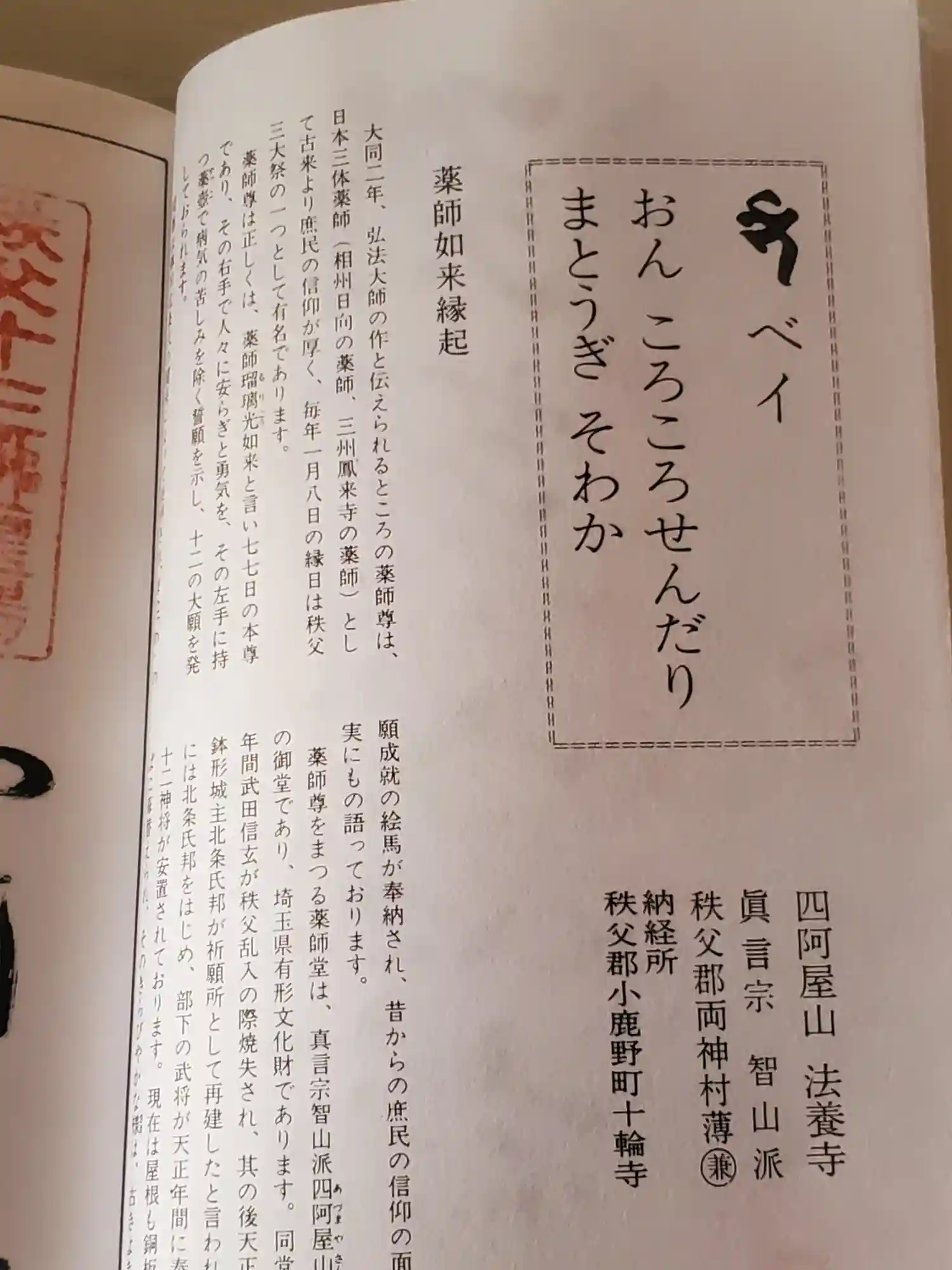 実はここは無住寺で、薬師如来の御朱印は小鹿野町にある十輪寺とい…