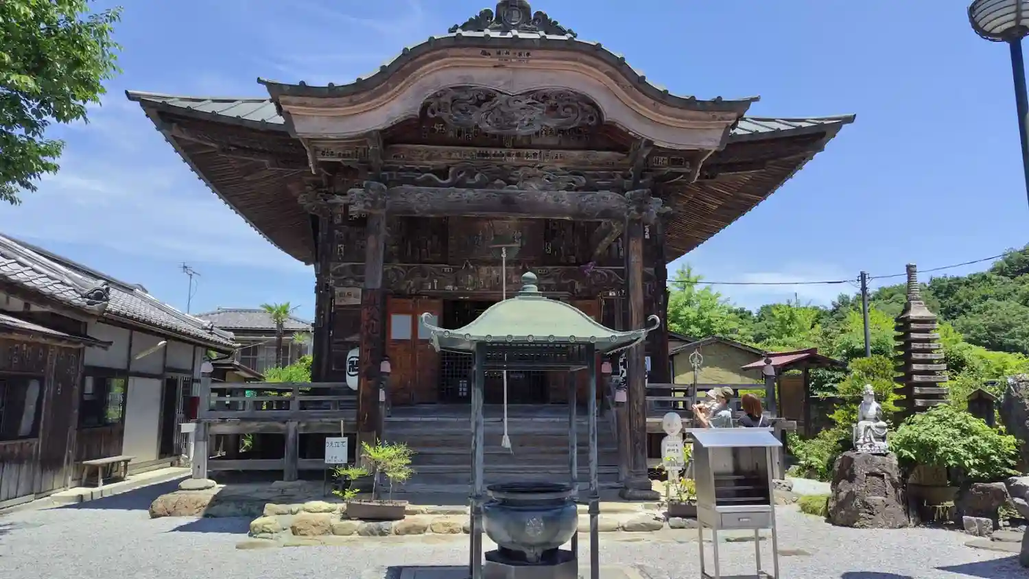 <本堂>正面。入口上部には、当寺の御詠歌の扁額。